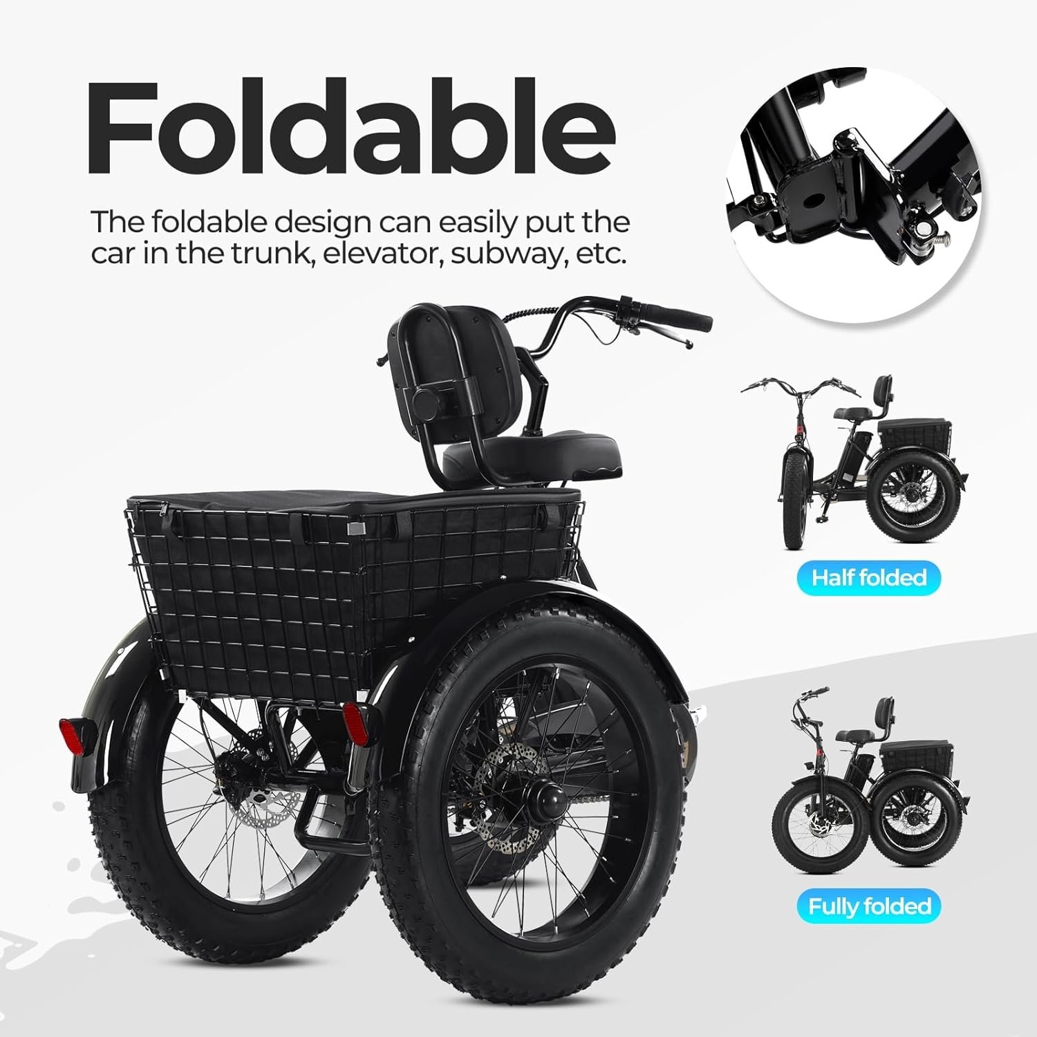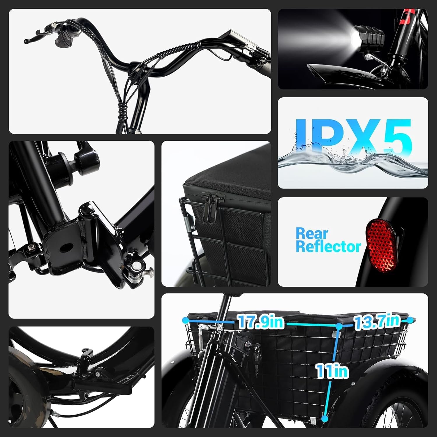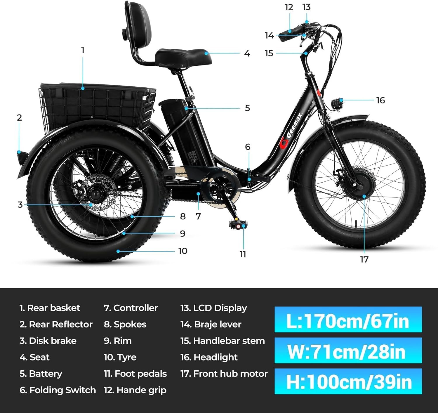 🌟 【 UPGRADE FOLDABLE – 80% PREASSEMBLED】Geemax Foldable three wheel electric bike arrives 80% assembled with clear instructions and video guide for quick and easy assembly. Order this ebike trike now, take you outside and enjoy happy life.