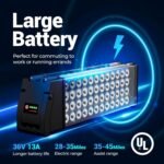 💪 【POWERFUL PEAK 500W MOTOR】 Electric tricycle for adults is equipped with a 36V 350W (Peak 500W) high-speed brushless motor, can drive this electric trike up to 20 mph and increases a stronger mountaineering performance. Comes with a 36V 13AH lithium battery covering a range of 40 miles on assist mode or 28 miles on etrike mode per full charge.