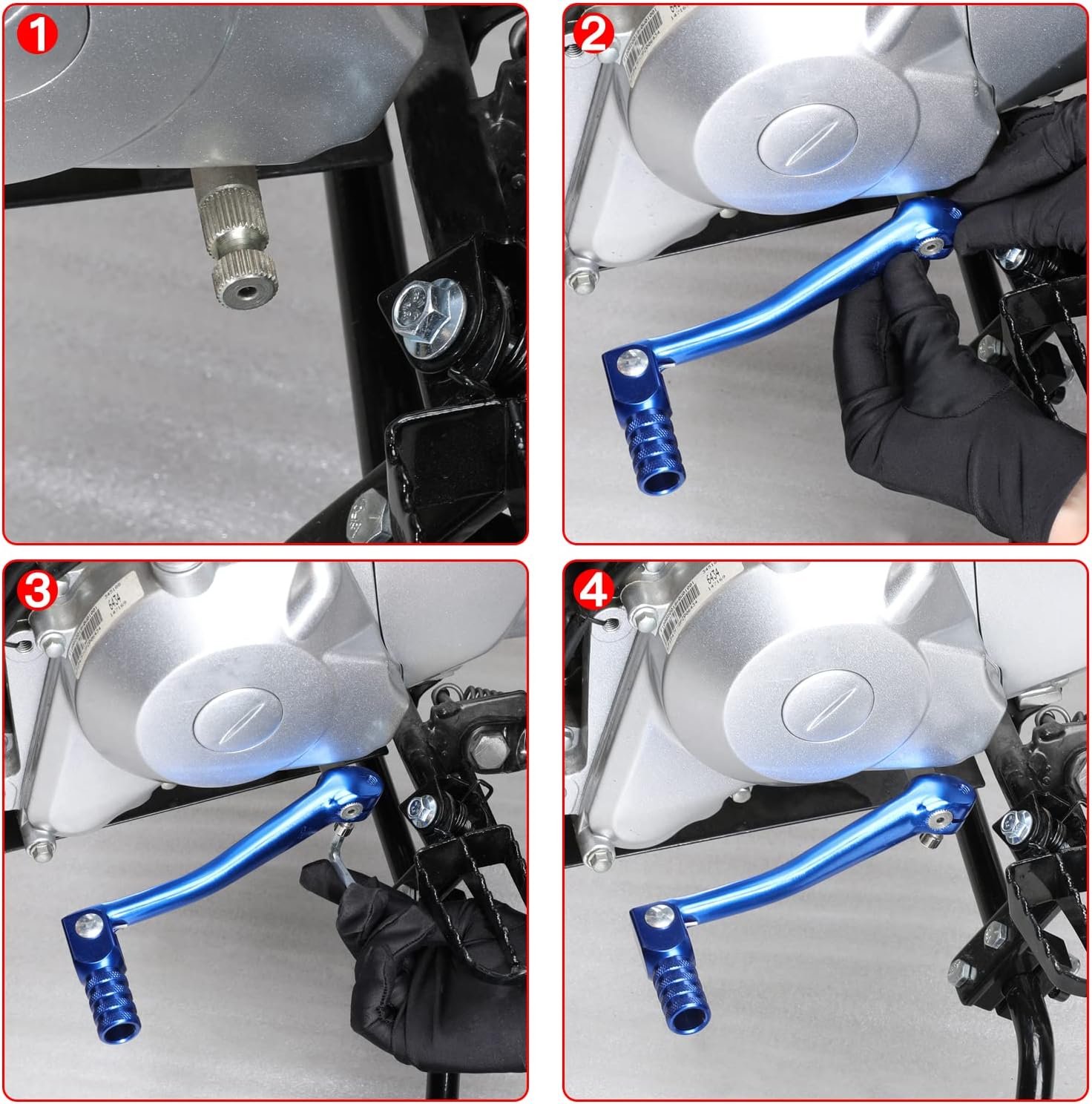 MATERIAL: This dirt bike shift lever adopts CNC machined high-quality aluminum alloy material with high strength, sturdy and durable, and not easy to deform. The surface of the gear shift lever has high wear resistance. The pitbike shift lever and tube are easy to install and portable
