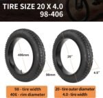 20X4.0 (98-406) E-BIKE FAT TIRE – This 20X4 fat bike tire is not only suitable for e-bikes but also for mountain bikes, snowmobiles and other types of bikes. Note: Please check the details and size carefully before purchase