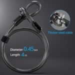 Accompanying the U Lock is a resilient steel cable, extending up to a length of 120cm (4 feet). With a diameter of 14mm (0.55inch), inclusive of its silicone cover, it further amplifies security options. Moreover, the mounting bracket is crafted to fit all tripods with diameters less than 28mm (1.10inch).