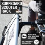 Customers find the scooter rack well-made, easy to install, and worth the price, with good design and fit, particularly noting how the surfboard fits perfectly between the padded sections. The functionality receives mixed feedback, with some saying it works great while others find it completely useless. Customers disagree on the stability of the rack.