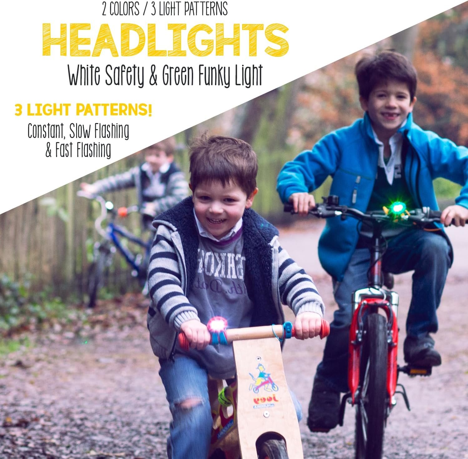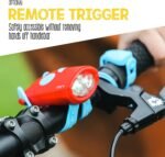 12 Lumens of White & Green LEDs – 5 different settings in either constant or flashing lights kids will love! In bright, traditional white, choose from a constant beam, slow flash, or fast flash. In fun, funky green, choose from a constant beam or fast flash. The white light will provide additional visibility during low light situations. Both the white and green flashing lights will alert drivers. A remote trigger lets kids operate the Mini without taking their hands off the handlebars!