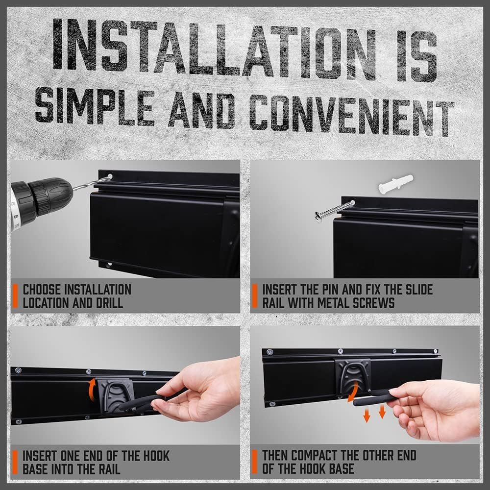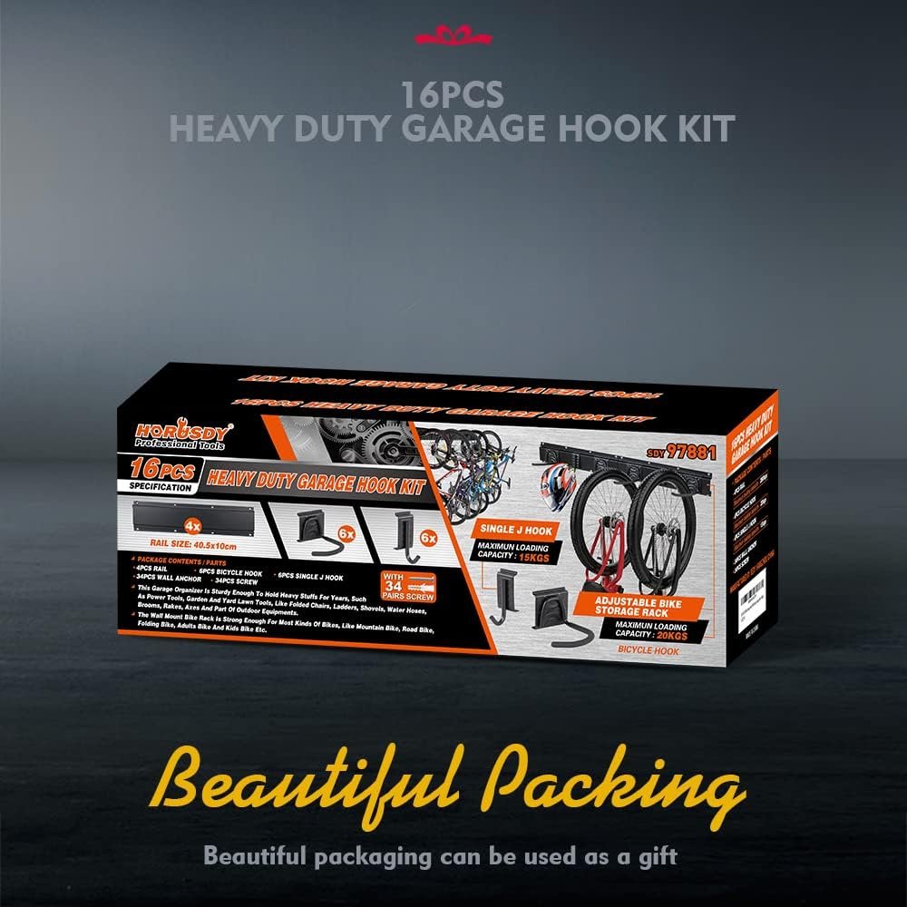 The super long guide rail with a length of 64 inches can be combined, and the special hook can accommodate 6 bicycles and 6 safety helmets. Effectively save space and keep your garage tidy and clean.