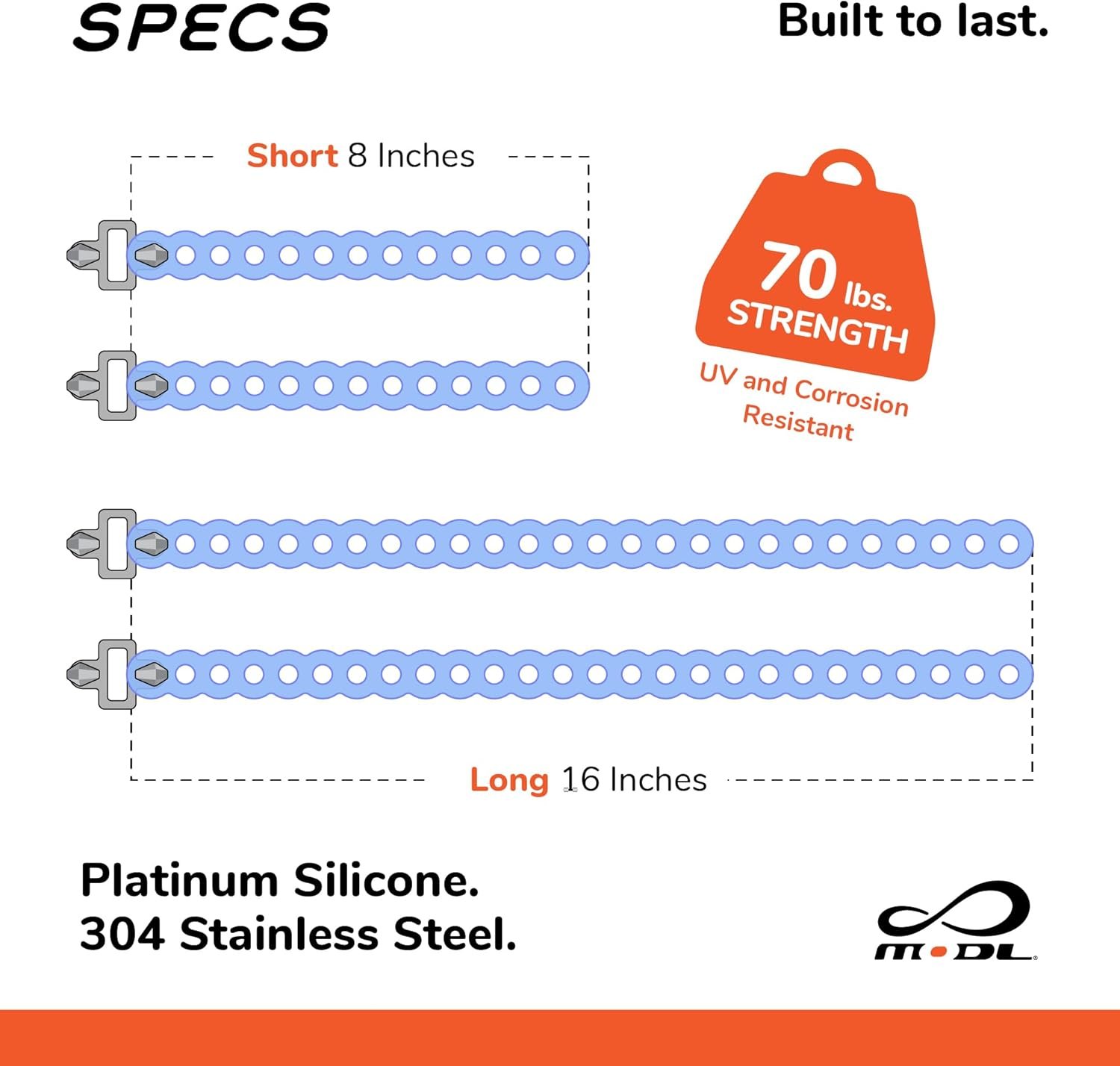 CUSTOMIZABLE. The Infinity Tool comes in Black and Glacier colors. Each 4-pack includes two 8” and two 16” Infinity Tools in the color you selected, and they can be cut to custom sizes.