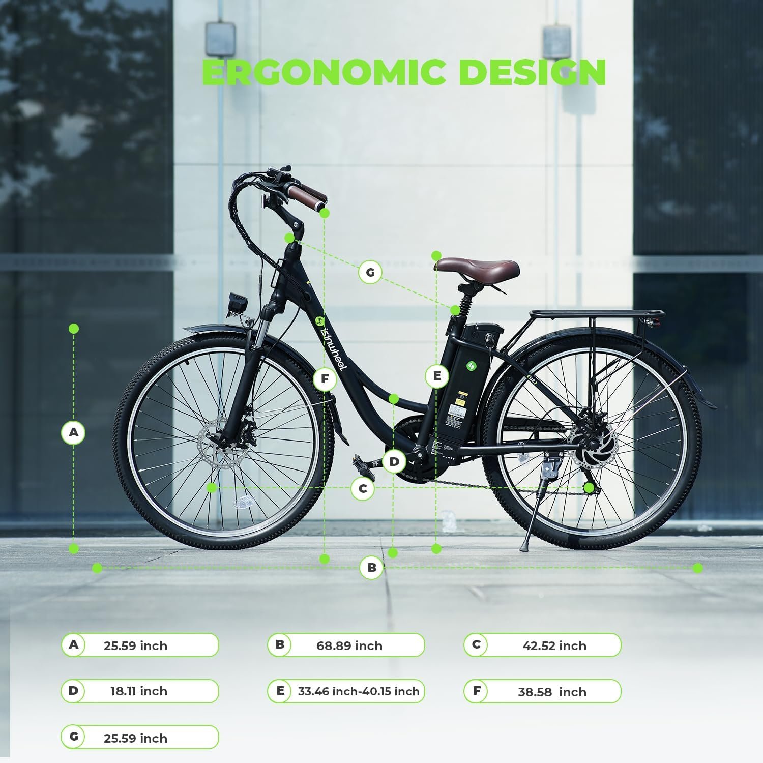 PREMIUM QUALITY MATERIAL – The 26″ electric bike is made of a light and sturdy carbon steel frame. The front and rear wheels are double-layer aluminum alloy wheels, with greater durability as well as a faster ride with less drag. This cruiser bike’s low step-through frame makes getting on and off the bike a breeze.