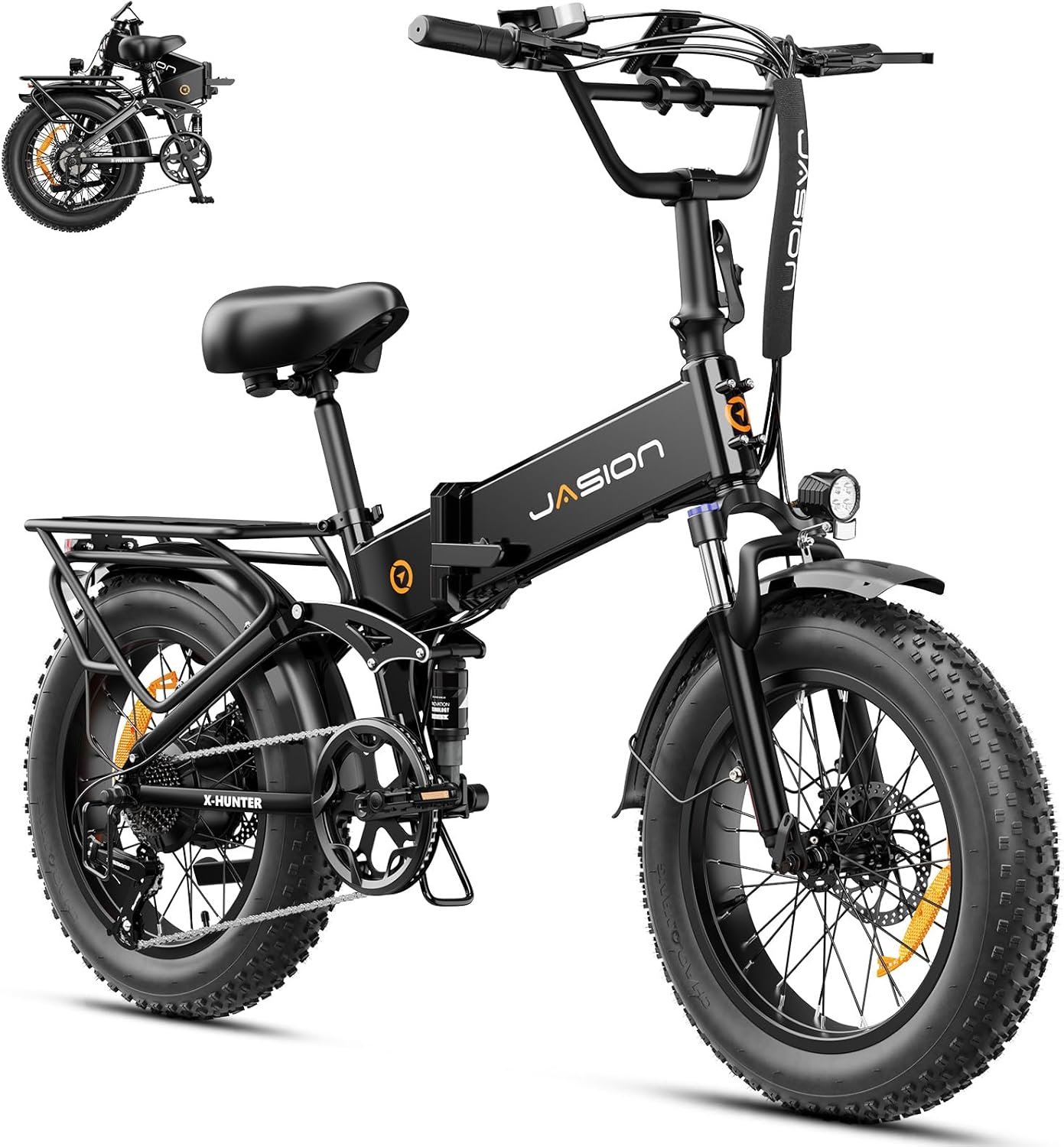 Full Suspension System-The Jasion X-Hunter electric bike is equipped with a dual suspension design.The front suspension is an air suspension that absorbs bumps with 80 mm of travel, meaning that there is enough comfortable space on bumpy or rough roads. The rear suspension can absorb most of the pressure, making sure more comfortable while cycling outdoors.