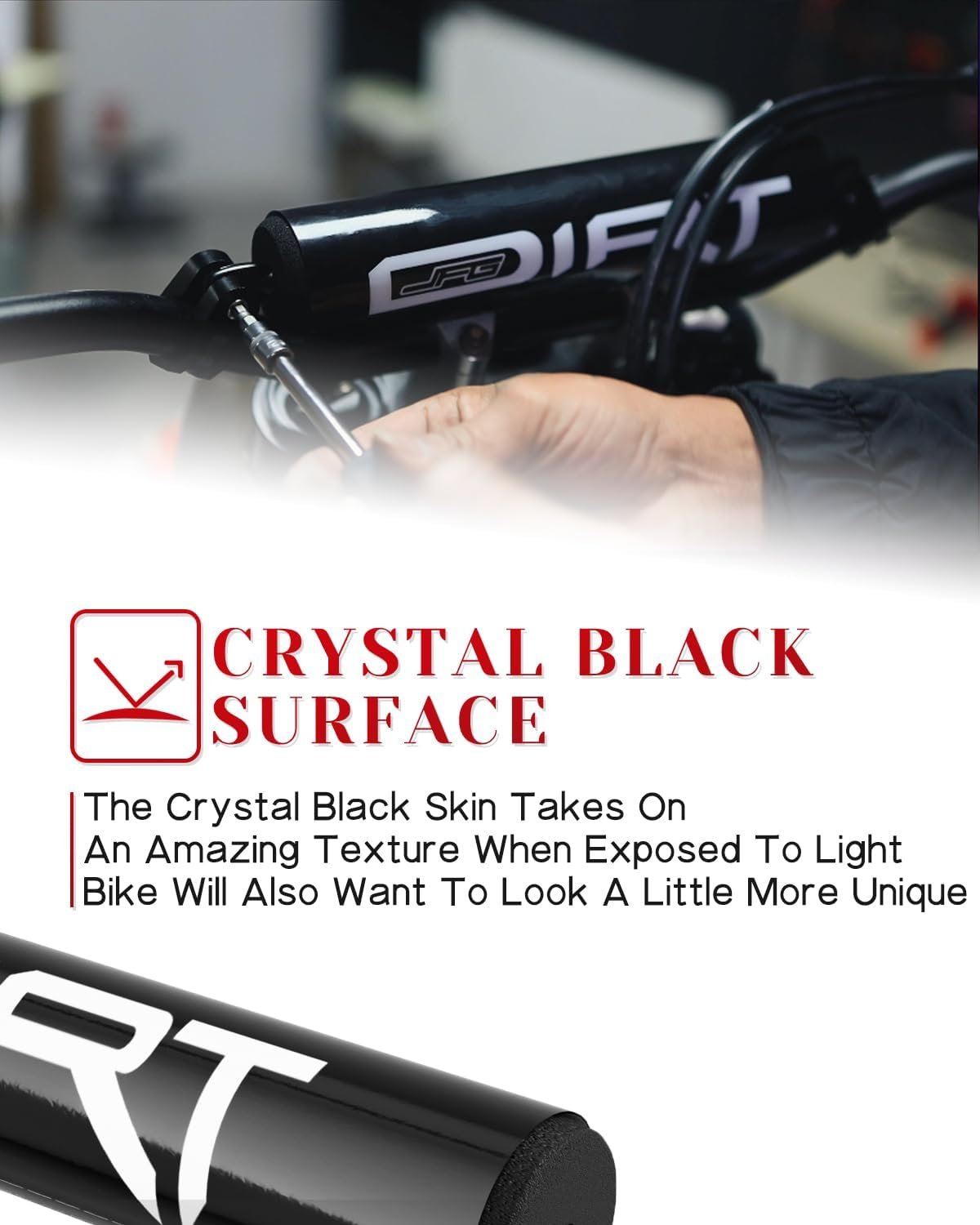 HIGH DENSITY FOAM PAD – The Crystal Black Skin Of The Handlebar Pad Will Show A Stunning Texture Under Strong Light. The High-Density Sponge Inside Has Better Protection Ability.
