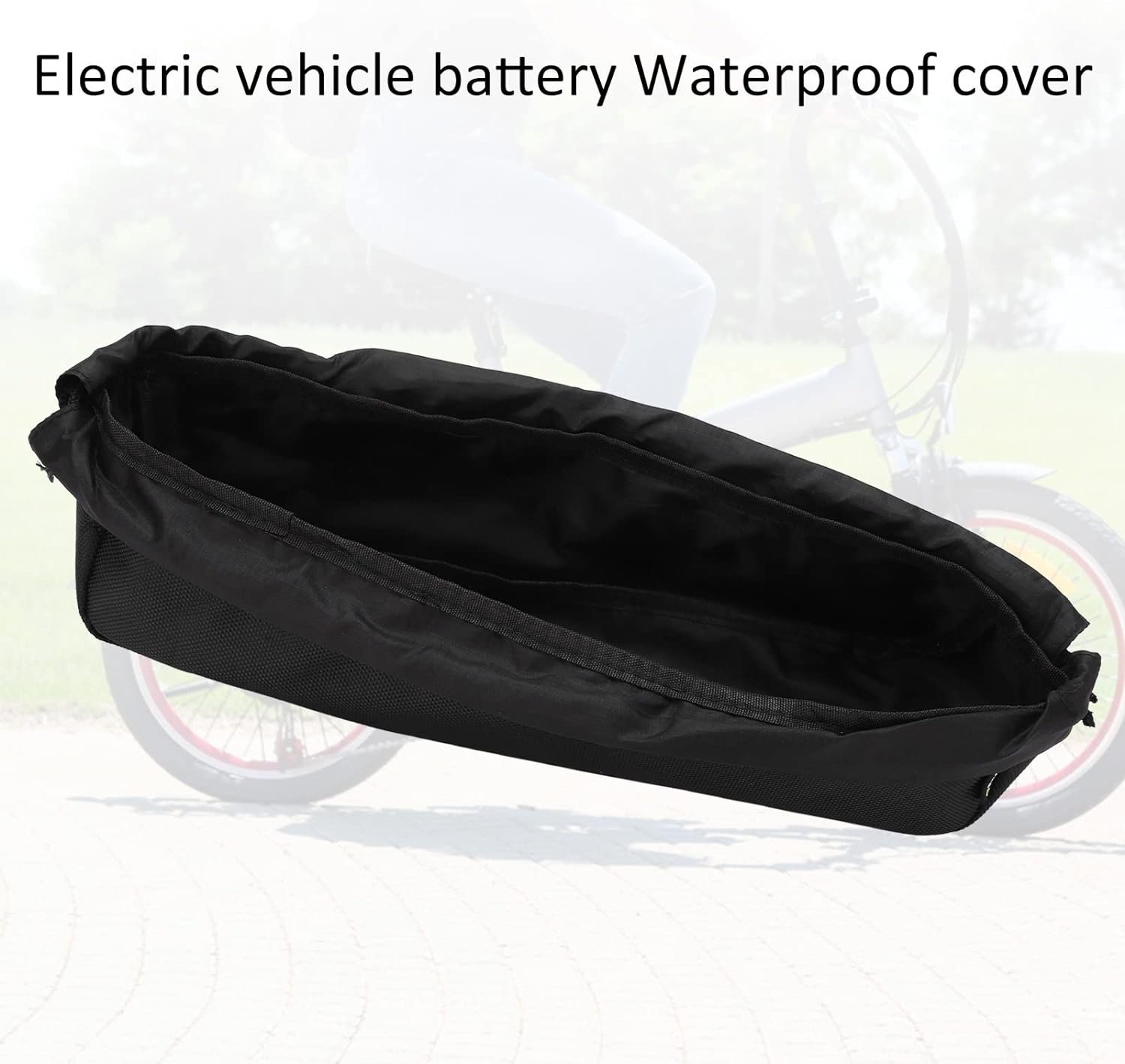 Robust Waterproof Protection: Constructed from durable 1680D oxford cloth, the waterproof Ebike battery cover offers superior waterproofing and wear resistance; Bicycle frame battery protector cover ensures that your electric bike battery remains shielded from rain, snow, and mud