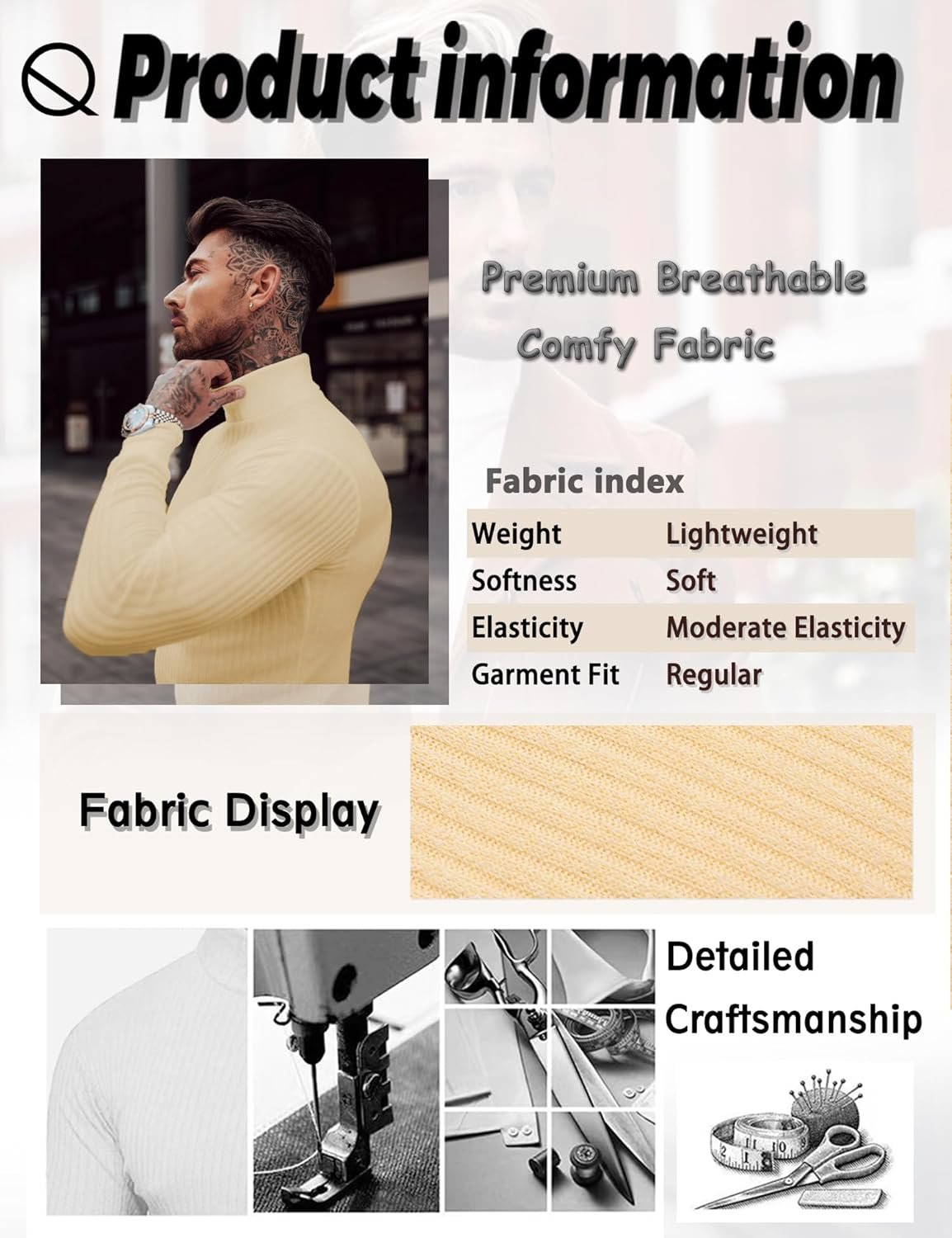 ZSJR Men Mock Turtleneck Tees