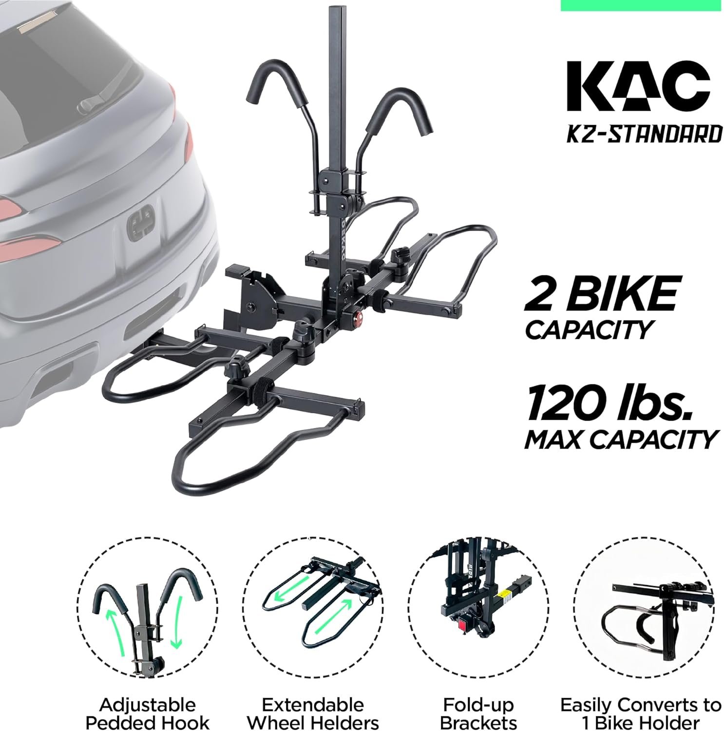 MADE FOR YOUR E-BIKE: This KAC 120 e-bike 2 bike bike rack has been specifically designed to cater to e-bike owners. It is capable of holding bulky and heavy e-bikes securely, allowing you to transport your e-bikes wherever your adventure takes you.