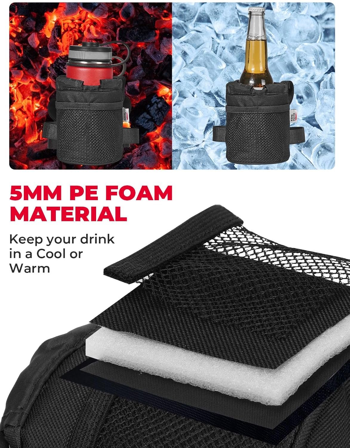 【Soft But Flexible】Different from other stainless steel or plastic bicycle cup holder, our scooter cup holder is made of premium Oxford fabric. This material offers superior durability, is easy to wash, and can withstand various environmental conditions.