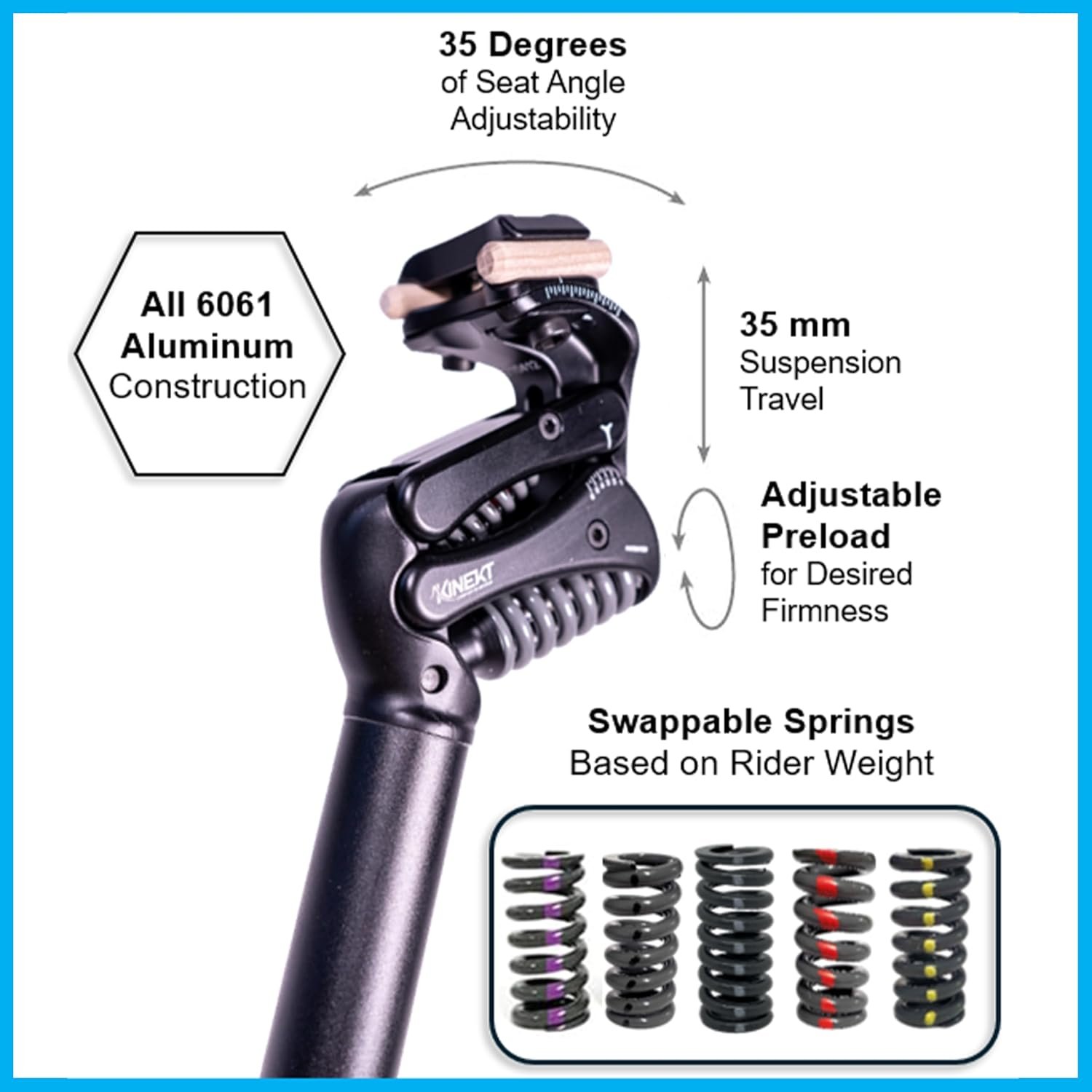 16 ADJUSTABLE SPRINGS: Each seat post comes with a range of 5 interchangable loading springs to custom-tune your ride to match your weight and preference, holds 80-320 pounds (36-145 kg)