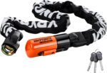 HIGH-SECURITY DESIGN: This Anti-Theft heavy duty bike lock is made from 10mm hardened steel chain links in a six-sided design. Features a patented reinforced oval crossbar lock head and equipped with a high-security disc-style cylinder resistant to picking and drilling. Patent-pending end link design securely connects the chain to a hardened deadbolt, eliminating potential weak points