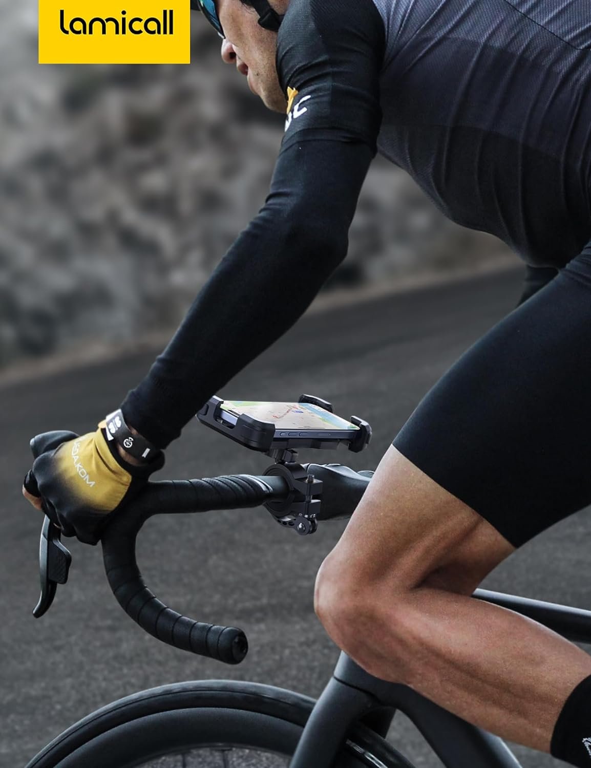 【 Wide Compatibility】 Universal bike cell phone holder in 4.7 to 6.8 inches with thickness up to 15mm (including phone case), like iPhone 16 Pro Max, iPhone 16 Pro, iPhone 16 Plus, iPhone 16, iPhone 15, iPhone 15 Plus, iPhone 15 Pro, iPhone 15 Pro Max, iPhone 14 Pro Max, iPhone 13 Pro Max, iPhone 12, iPhone Xs Max, iPhone X, iPhone 8 Plus 7 6s 6, Galaxy S10 + S10e S9 S8, Note 9, LG and other cell phones. The max height/ width of the phone clamp is 6.61″ (168mm)/ 3.11″ (79mm), for Galaxy S21 ultra and S22 ultra when they have a case, it may can’t fit.