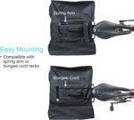 Compatibility – Quick mount onto bike carrier racks with bungee cords or a spring arm
