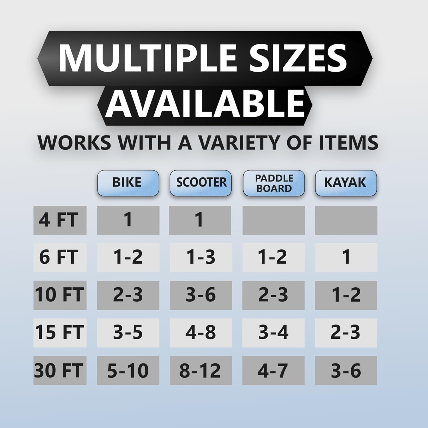 Versatile – Ideal for securing a variety of items, including bikes, kayaks, paddleboards, scooters, gates, skateboards, motorcycles, lawnmowers, grills, patio furniture, sports equipment, tool boxes, ladders, doors, and more.