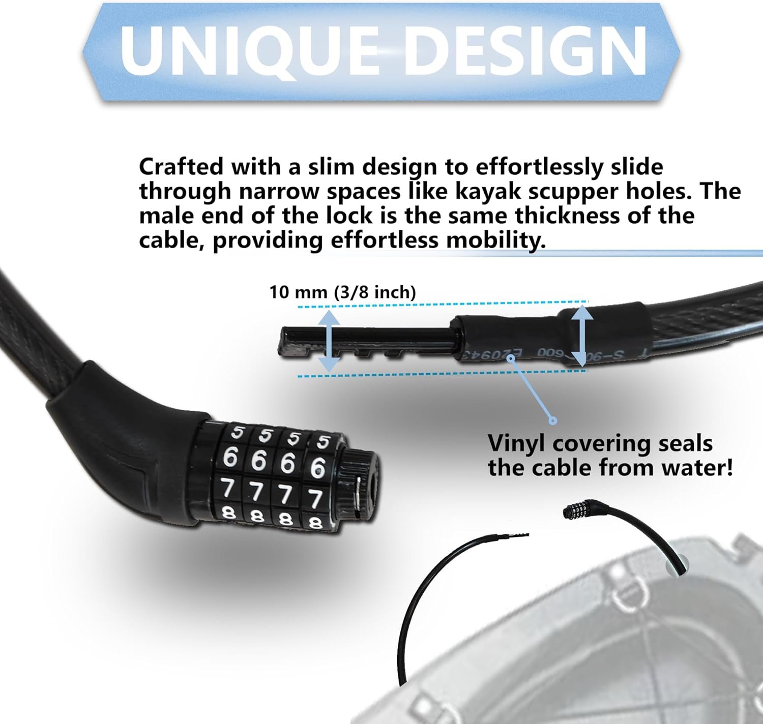 Unique Design – The cable’s male end, matching its diameter, smoothly navigates narrow spaces like kayak and paddleboard scupper holes, ensuring secure fastening.