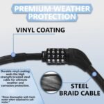 Secure and Durable – Strong steel cables with weather proof vinyl coating provide security and cut resistance, prevent scratching, and increase durability.