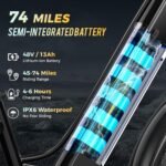 【1500W Peak Motor & 30MPH Top Speed】The Aipas electric mountain bike is equipped with a 1500W peak motor. With a strong torque of 110Nm, it can easily achieve a climbing ability of up to 30°and a top speed of 30MPH, easily conquering various complex terrains, from city streets to rugged mountain roads. 48V 13Ah battery, you can enjoy a range of 25-74 miles per charge, making your ride full of passion and speed.