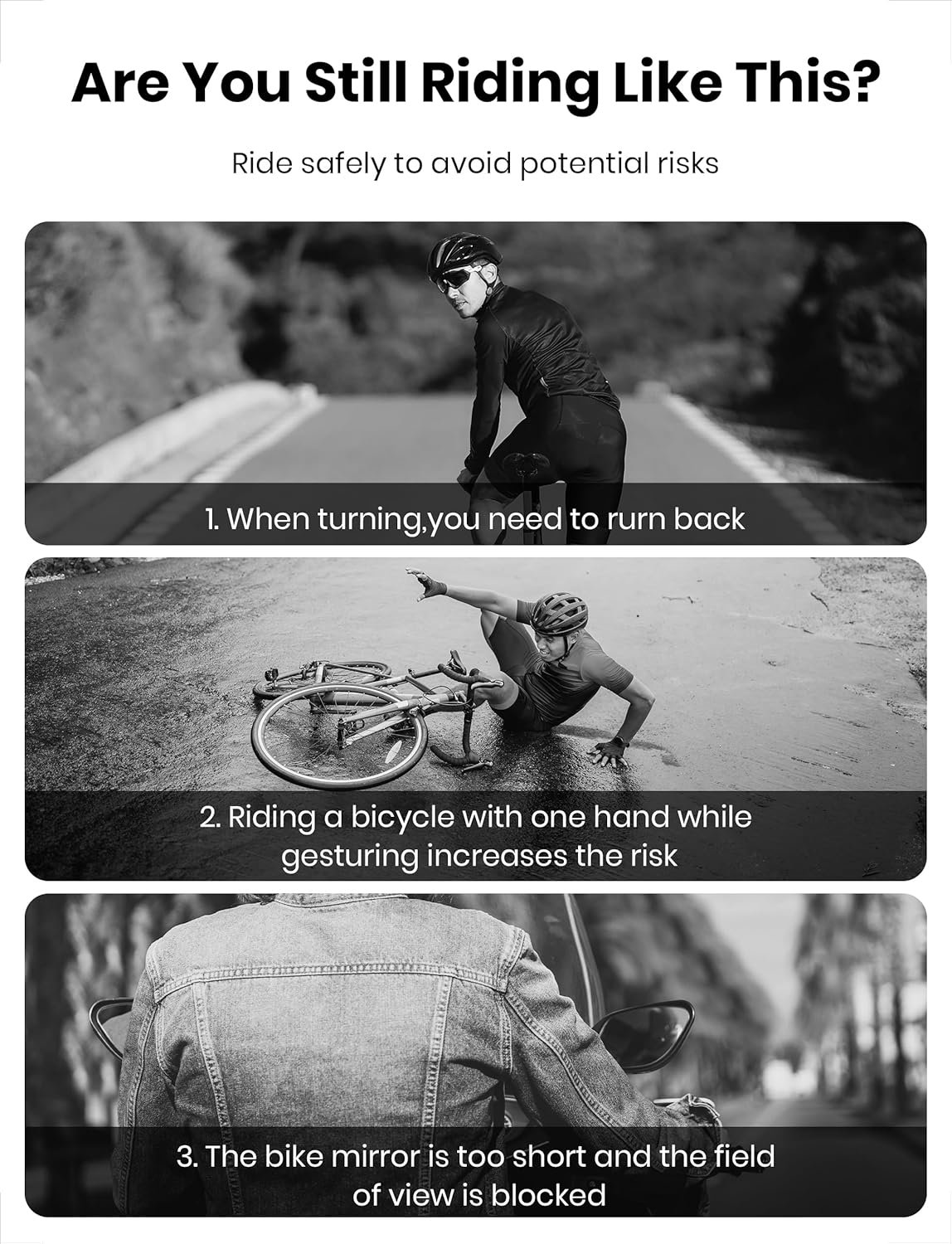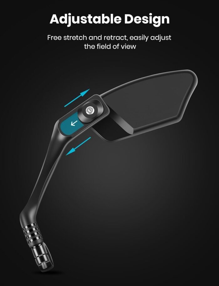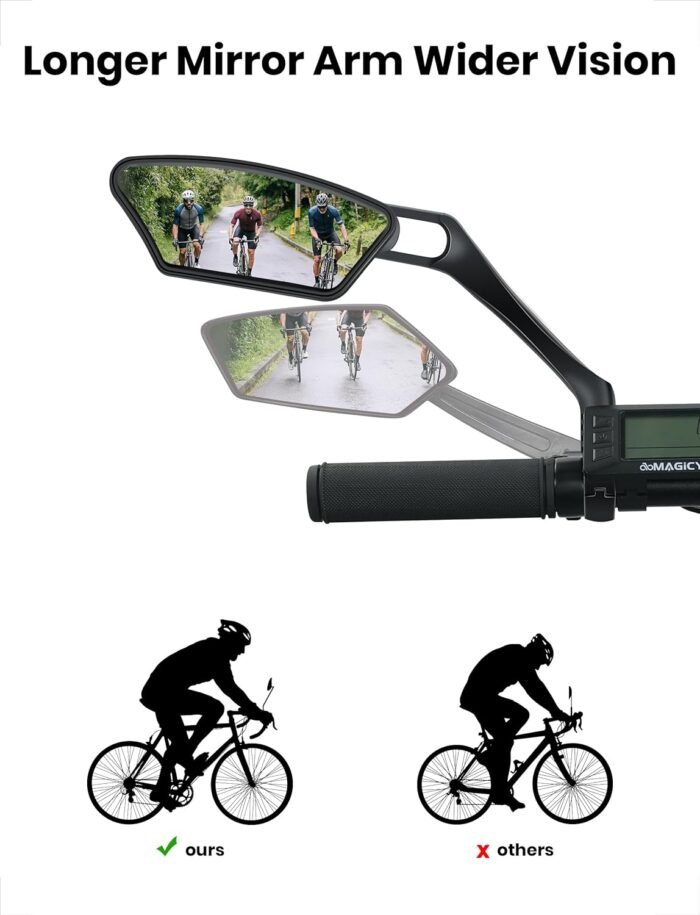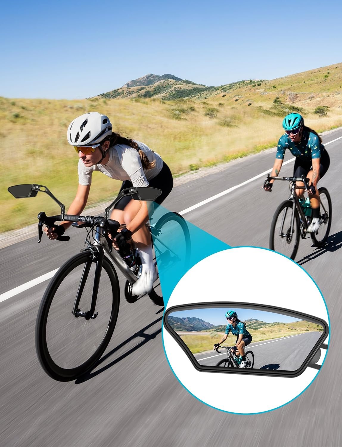 🚲【Sturdy and Durable】: Bike side mirrors is designed with high-impact frame which is made by ABS materials,and high-hardness aluminum alloy base clamp. The sturdy structure ensures that the bike mirror would not shake, crack or break, so it can be used for a long time.