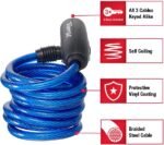 The Master Lock 8127TRI Keyed Bike Lock Cables, 3 Pack Keyed-Alike are 6 ft. (1.8 m) long and features 5/16 in. (8 mm) diameter braided steel for maximum strength and flexibility. The protective vinyl coating protects against scratches. The bright colors simplify identification. The Lifetime Guarantee provides peace of mind from a brand you know and can trust.