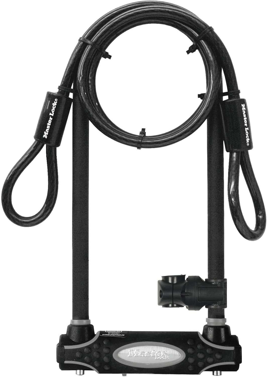 Master Lock Black Heavy Duty Outdoor U-Lock with Looped End Cable with 2 Keys, Anti-Theft Bike Lock with Extended Shackle Length for Motorcycles, Electric Scooters, with 2 Keys, 8285EC