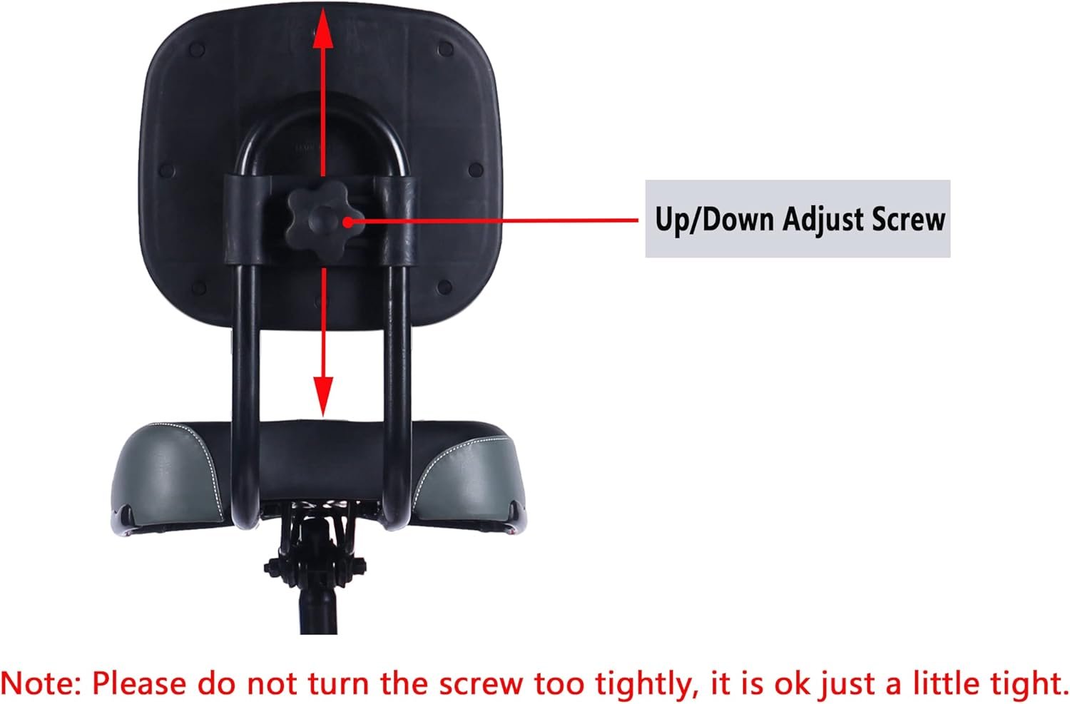 Humanized backrest height adjustment design. Just gently unscrew the adjustment button, you can accurately locate the most suitable support height according to your body type or riding needs, easy and fast operation, whether it is a short commute, or a holiday adventure, you can handle with ease. Note: Please do not turn the screw too tightly when you adjust it, it is just right a little tight. It maybe will slip if you turn it too tightly.