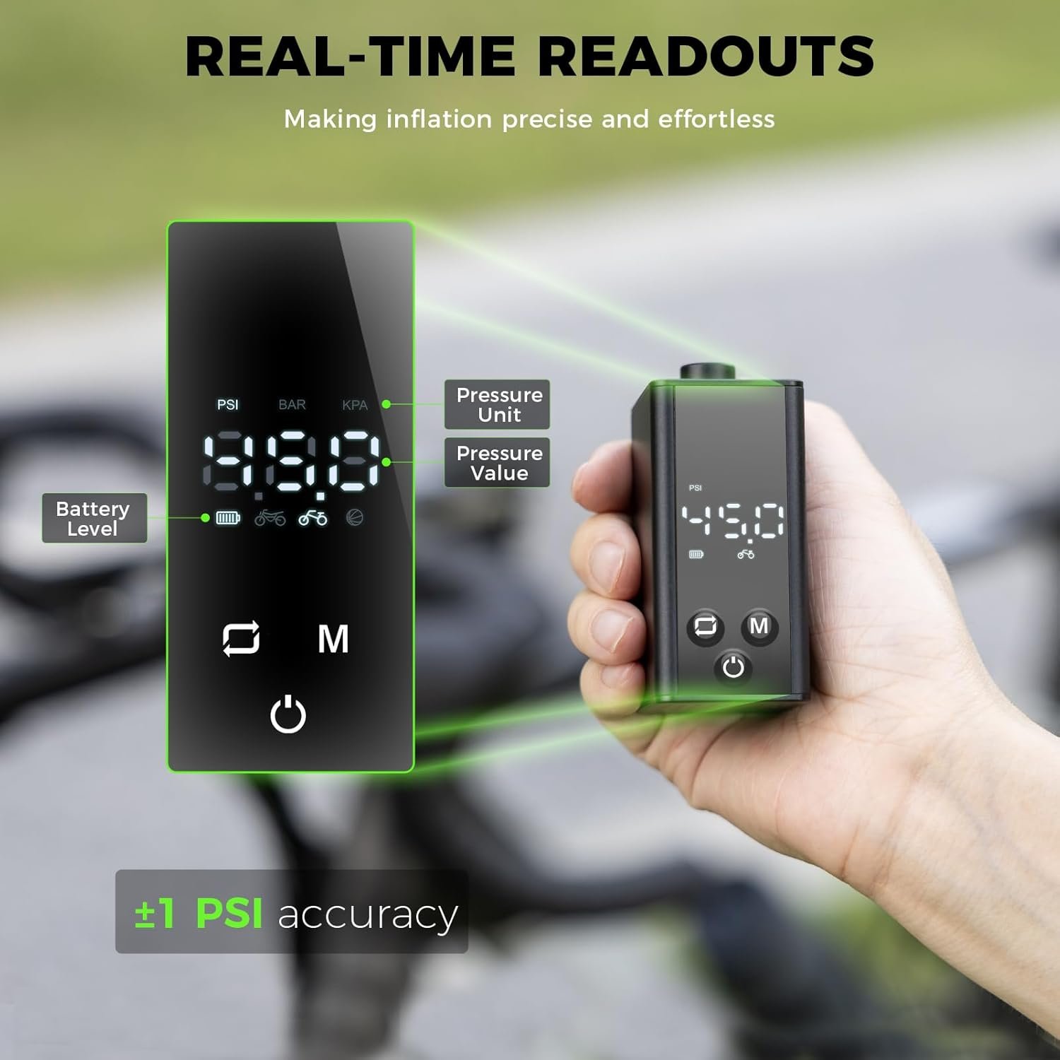 Precision and Protection: The B7 smart mini bike pump automatically shuts off when your desired pressure is reached, preventing over-inflation and keeping your bike tires safe. Inflate with confidence and ease