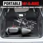 Portable Battery Design: The adult e-bike battery is seamlessly integrated into the bike frame for a compact look. With the bike seat folded down, the battery can be easily removed and charged anywhere