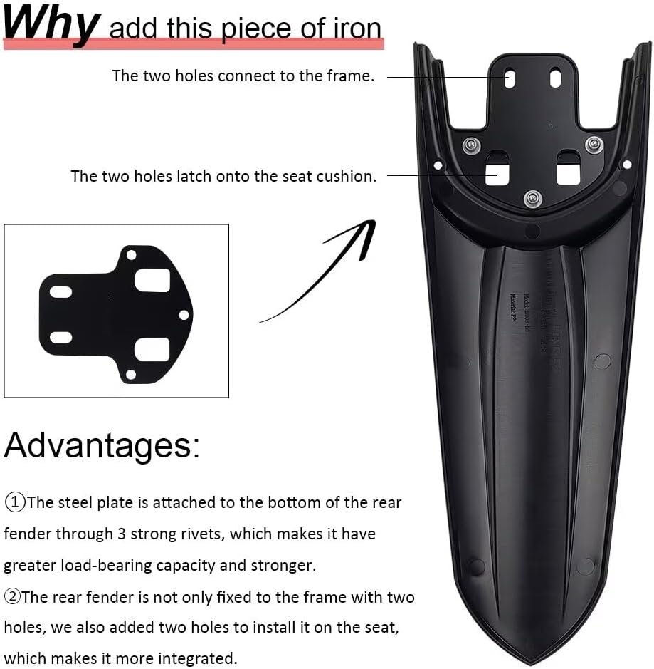 The fender protects the rider from sand and mud splashes while riding, making the ride more comfortable and also reducing the impact of splashes on other vehicles and pedestrians to a certain extent during the ride.
