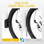 【Upgraded 150° Swivel Design】 Swivel design with bearing system, swivel bike rack wall mount conveniently stores bikes in center, left or right-angled position, making it a convenient storage solution around parked cars and inside apartments. The swivel system allows you to store bike flush against the wall. Just hook the front wheel in place, rest the back wheel on the stabilizer, and then rotate the bike wall hanger to the desired angle.