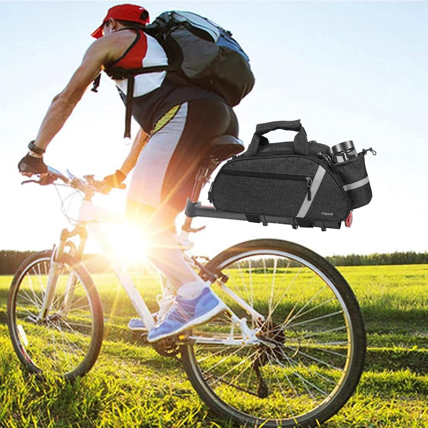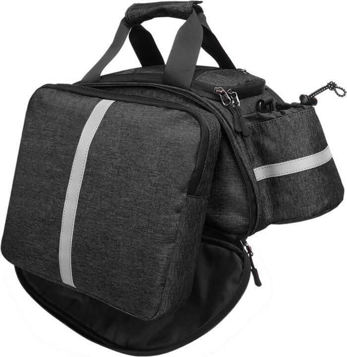 Made of waterproof polyester material, effectively prevent rain, water, mud, dust from entering this bag quickly. 4 hook-and-loop fastener straps are stable enough to hold this bike bag on the backseat. Make sure it will not move around even though you’re riding on a rugged road.