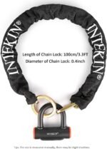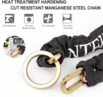 HIGH SECURITY: The bike chain lock is made of 10mm/0.4inch heat treatment hardening manganese steel square link which is resistant to cutting, breaking, sawing and shearing. This anti theft motorcycle lock is a perfect product for protecting your bicycle, motorcycle, and other valuables things. It will provide you high security.