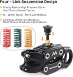 Four Bar Linkage Suspension Design: The four bar linkage shock absorption design provides the shock absorption effect of “isolation system”,effectively absorbs the vibration and impact from the ground while ensuring that the riding posture Angle does not change, and provides a silky buffer effect for riders.