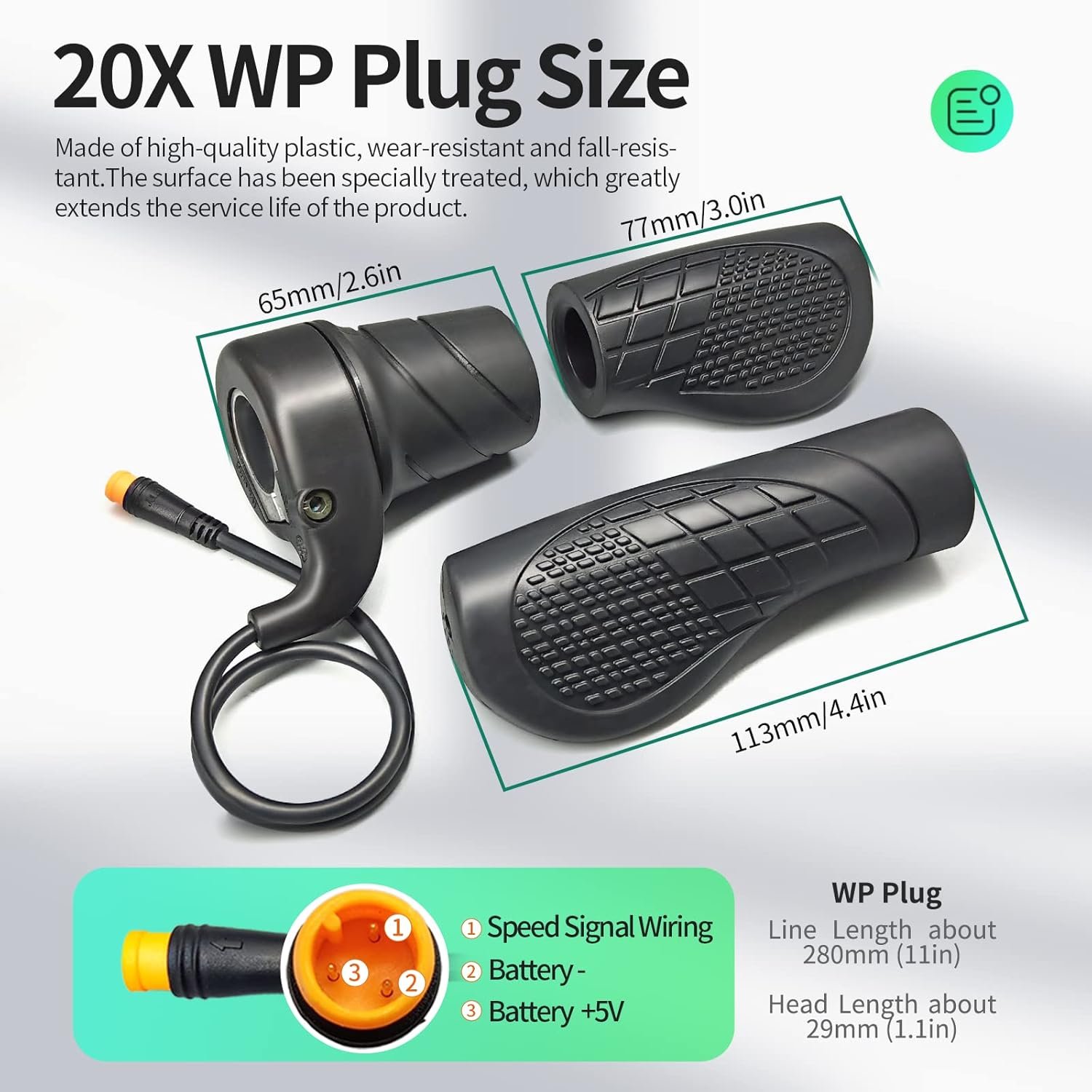 20X Half Twist Throttle:Suitable for right hand,3 Pin Male waterproof plug, Cable line length 30cm/11.8inch.