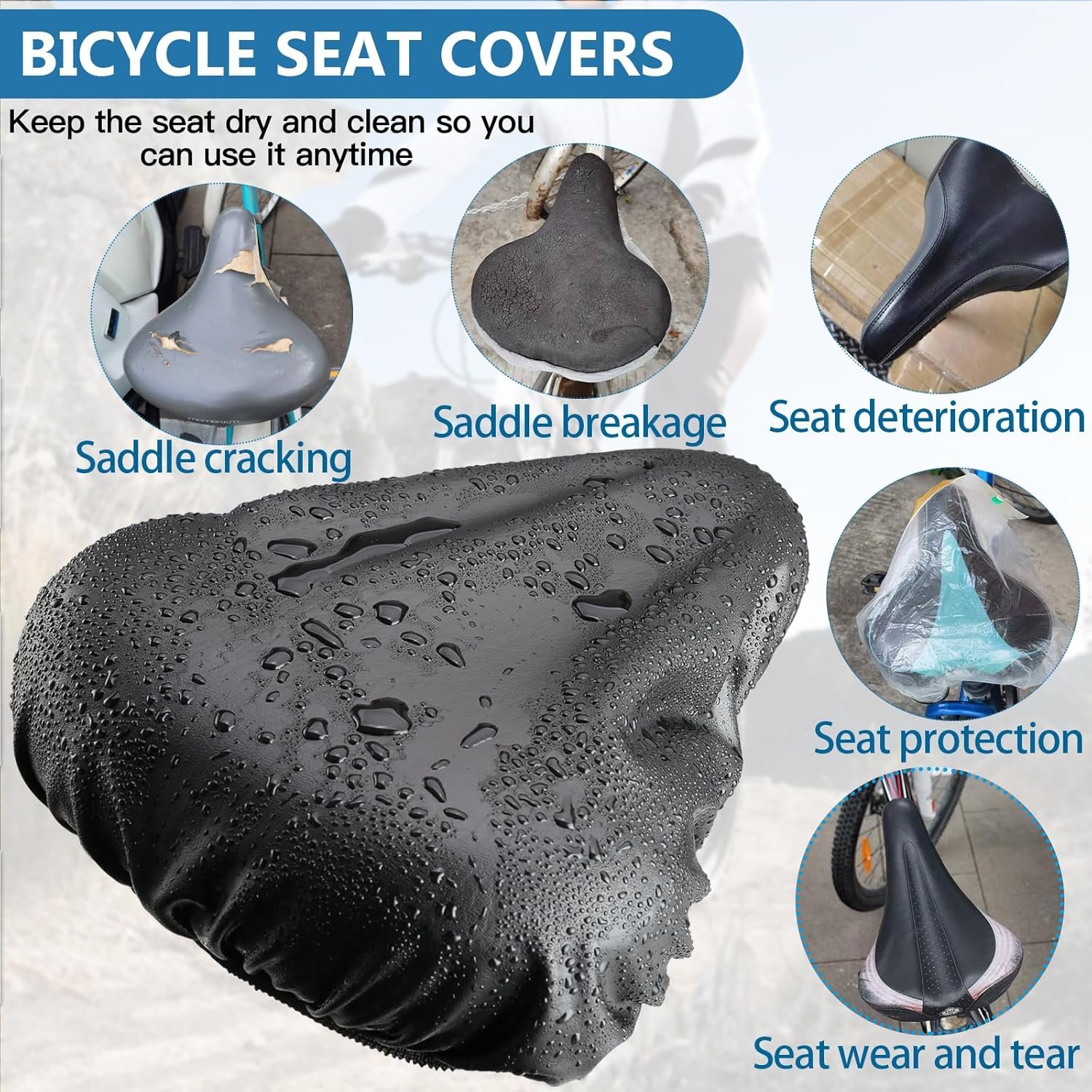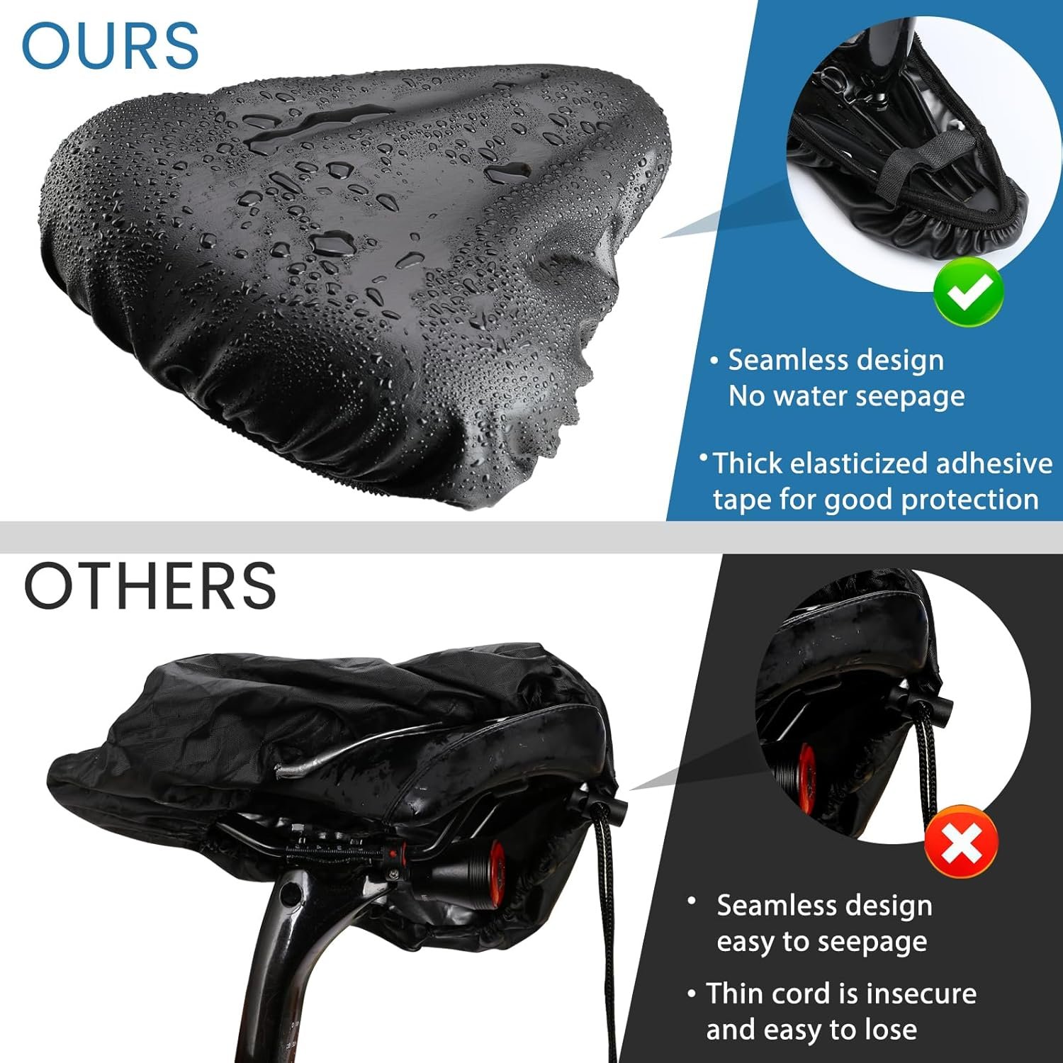 Upgraded Design: With Velcro and seamless design, the saddle cover is more securely fastened against rain, dust, UV rays and damage, providing excellent bike seat protection.