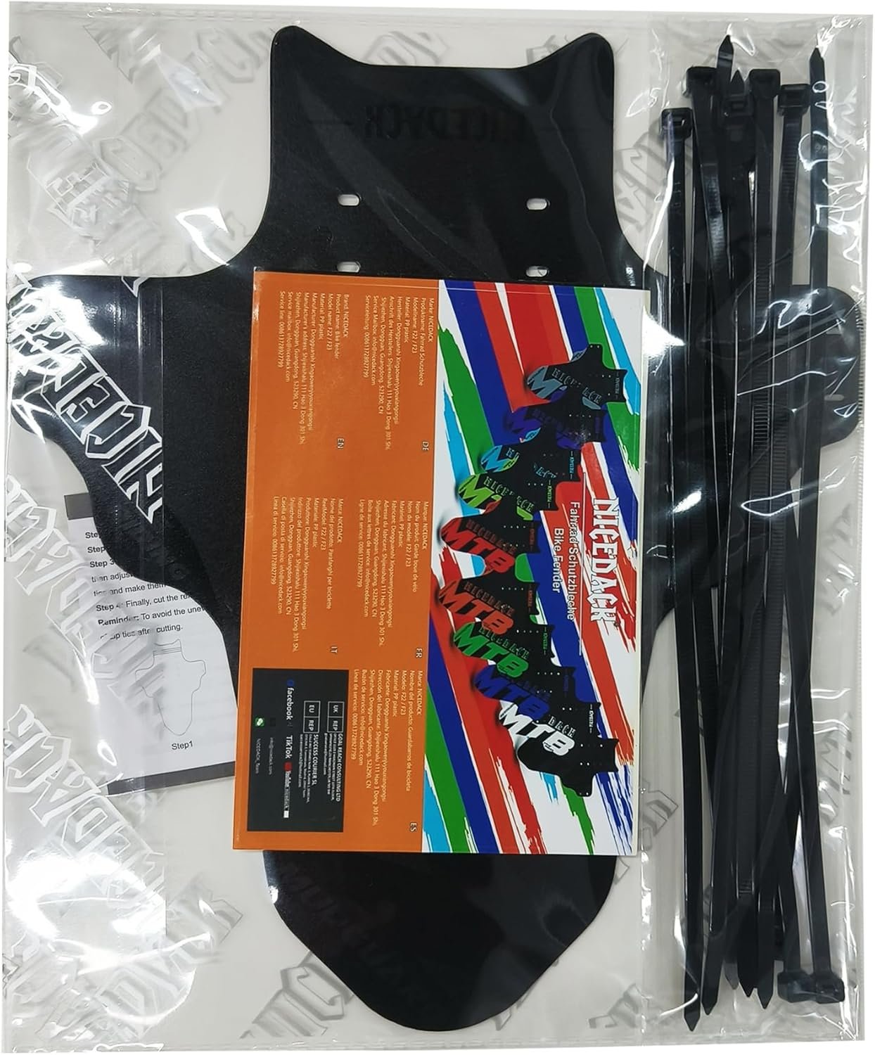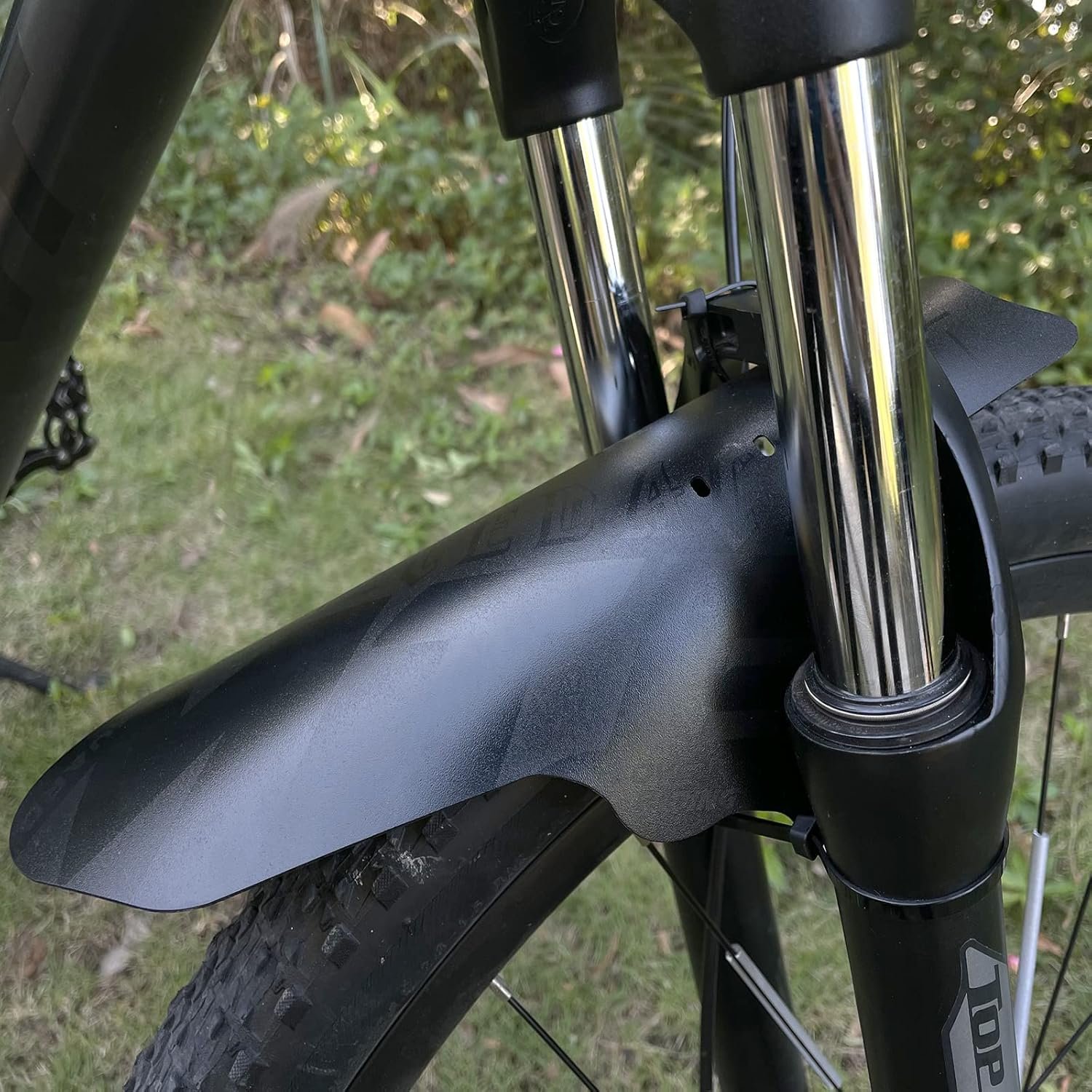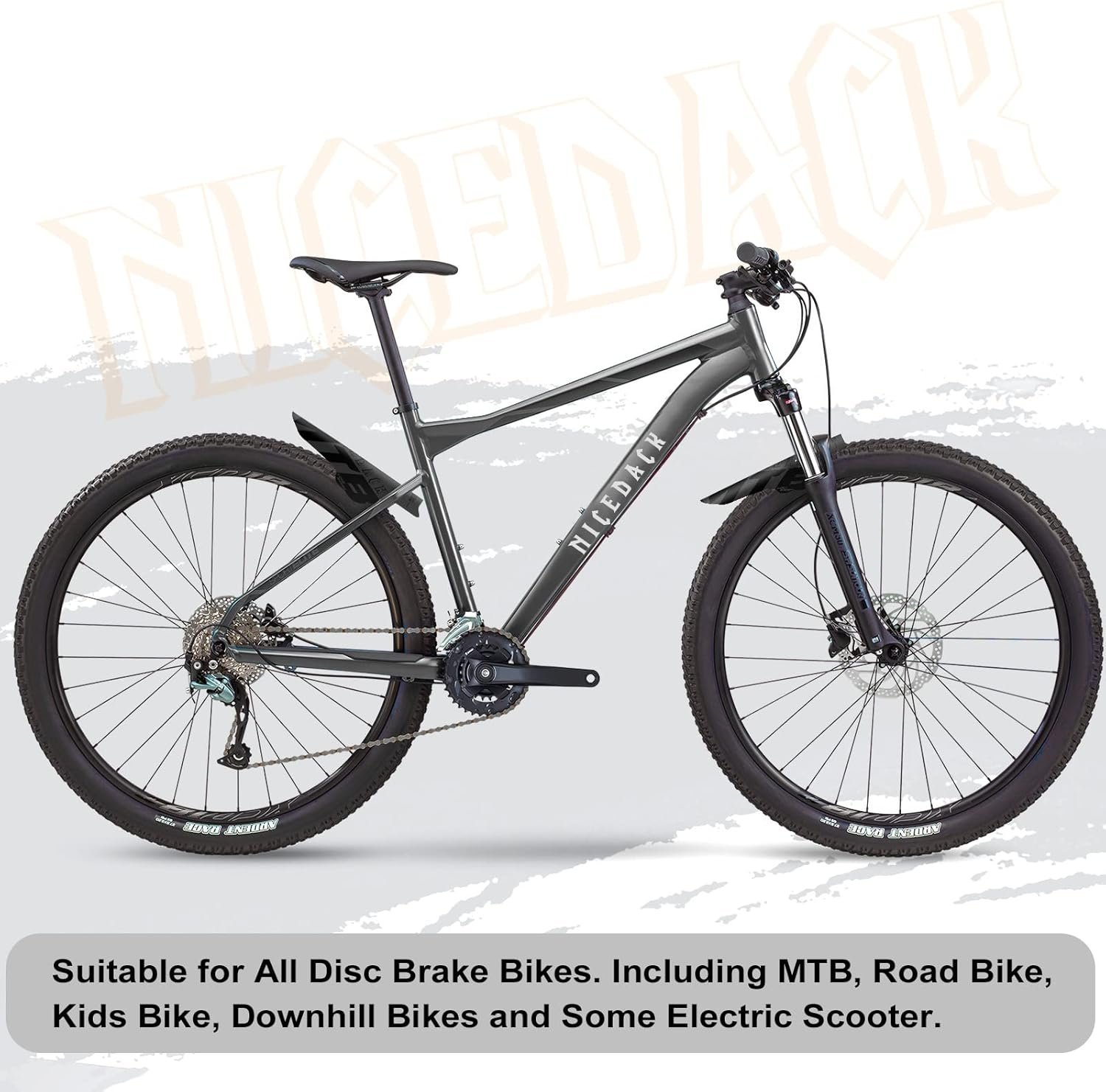 The improved bicycle mudguard set from Nicedack. The length of the rear mudguard has been increased to 46 cm, effectively blocks mud and dirt from the bike to keep you and your bike clean. NICEDACK mountain bike mudguards are suitable for all 24-29 inch mountain bikes with disc brakes.