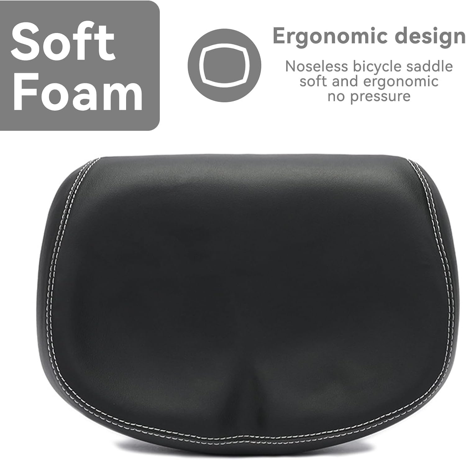 New Noseless Oversized Bike Seat, Extra Wide Comfort Pure Memory Foam Bicycle Seat Cushion, Compatible Saddle Replacement with Electric Bike, Exercise, Cruiser, Road Bike for Men & Women