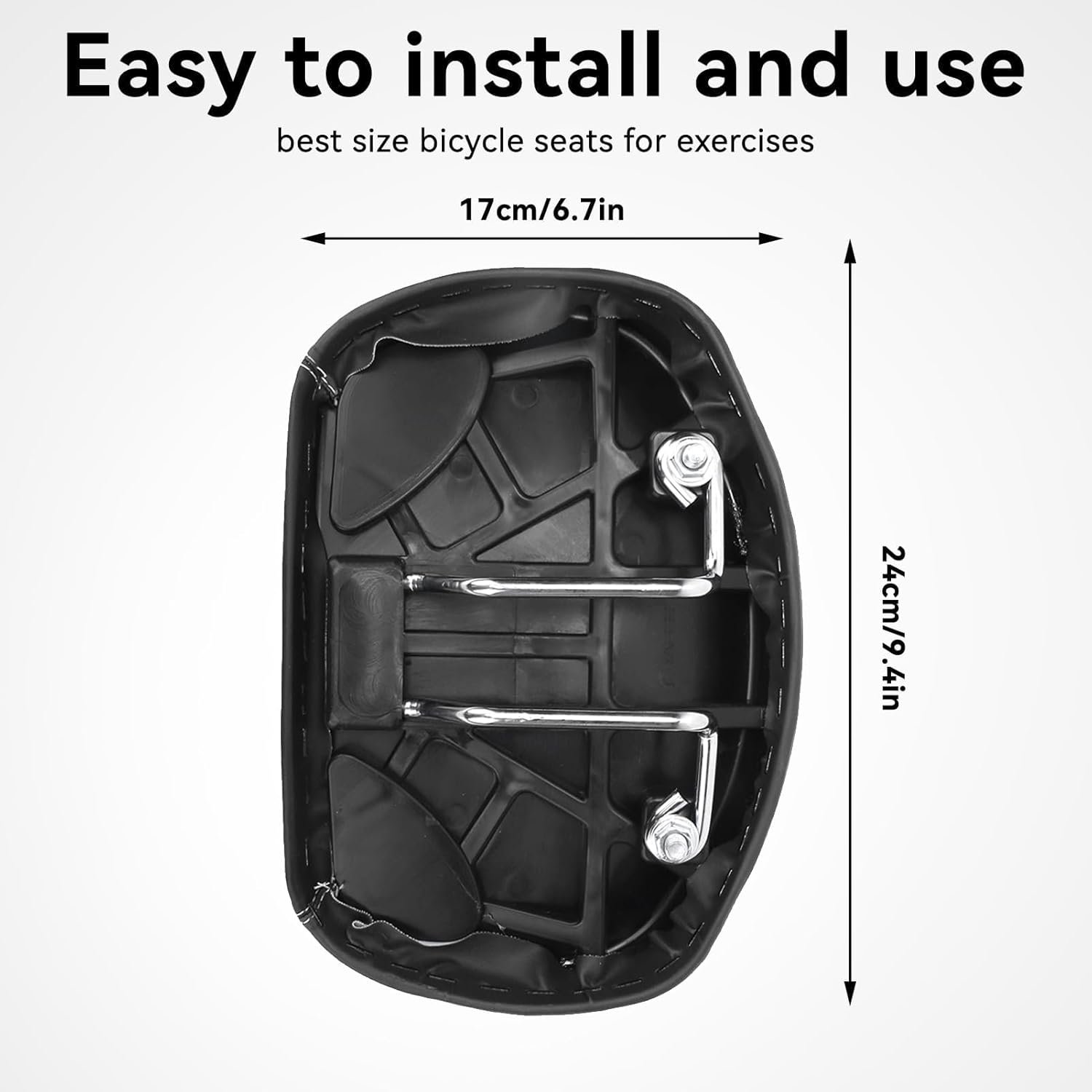 ​[Size]:Saddle upper part area: 24x17cm/9.4×6.7in,Saddle size: 26x17x9cm/10.2×6.7×3.5in. Our wide bike seat for men women is Easy to install and use, best size bike seats for exercises. Nose Free Bicycle Saddle Designed for men, women, boys, girls, kids