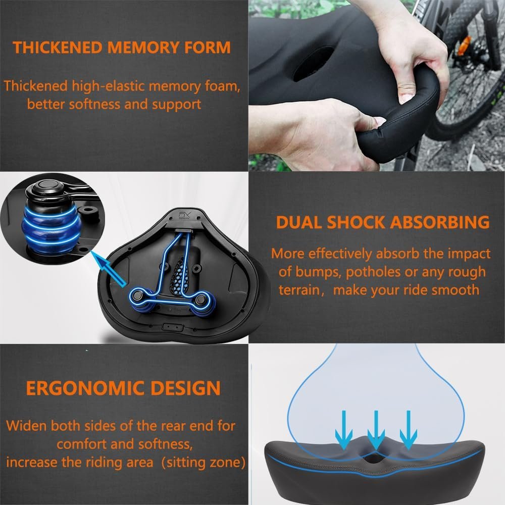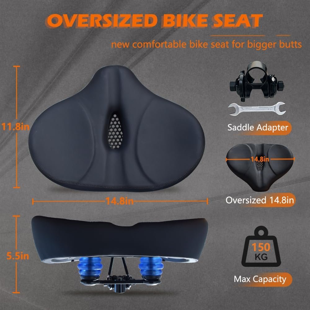 【Oversized seat】New oversized comfortable bike seat for bigger butts,cushion size:11.4×14.8×5.5in.