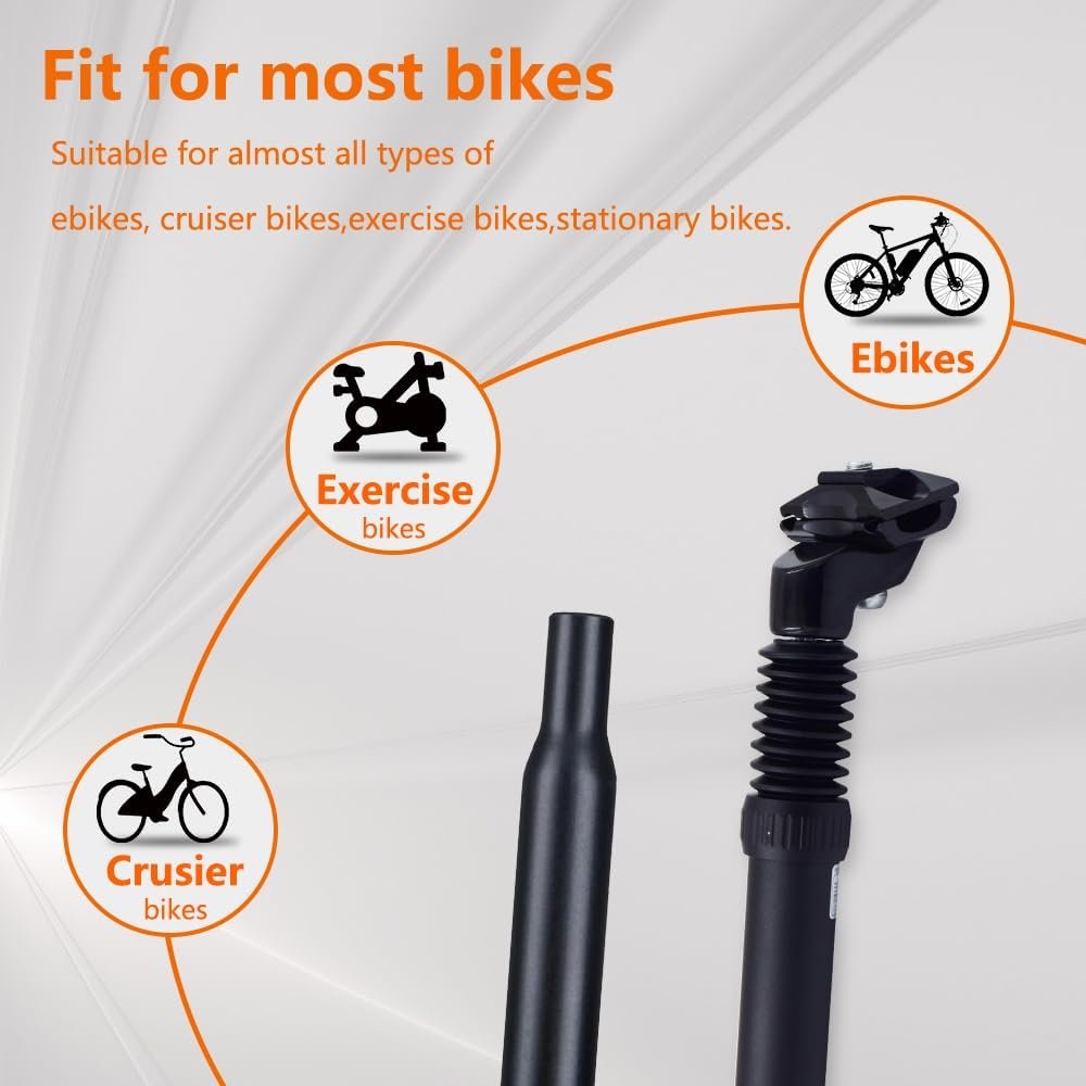 【Install Easily】Seat cushion set includes a bike seat,adjustable adapter and installation wrench,it can be installed in a short time.Universal adapter fits almost all types of electric bike,cruiser bikes,mountain bikes,exercise bikes,stationary bikes.