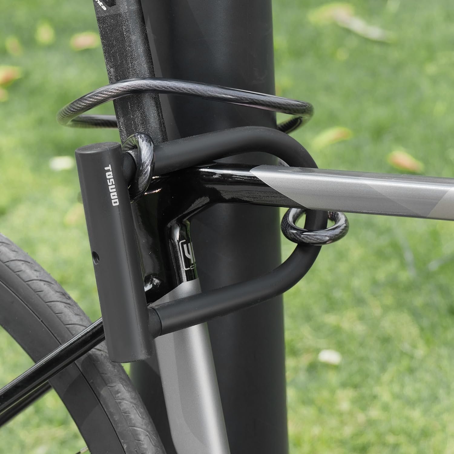 [EASY INSTALLATION & CONVENIENCE] The bike lock combination is equipped with an easy to install bicycle lock bracket (with a gasket) to protect the bicycle paint from being scraped off. Our bike locks bracket is suitable for bicycle inner tubes: 20-50mm. This simple and convenient installation allows you to quickly carry and store the bicycle U-lock when going out for cycling