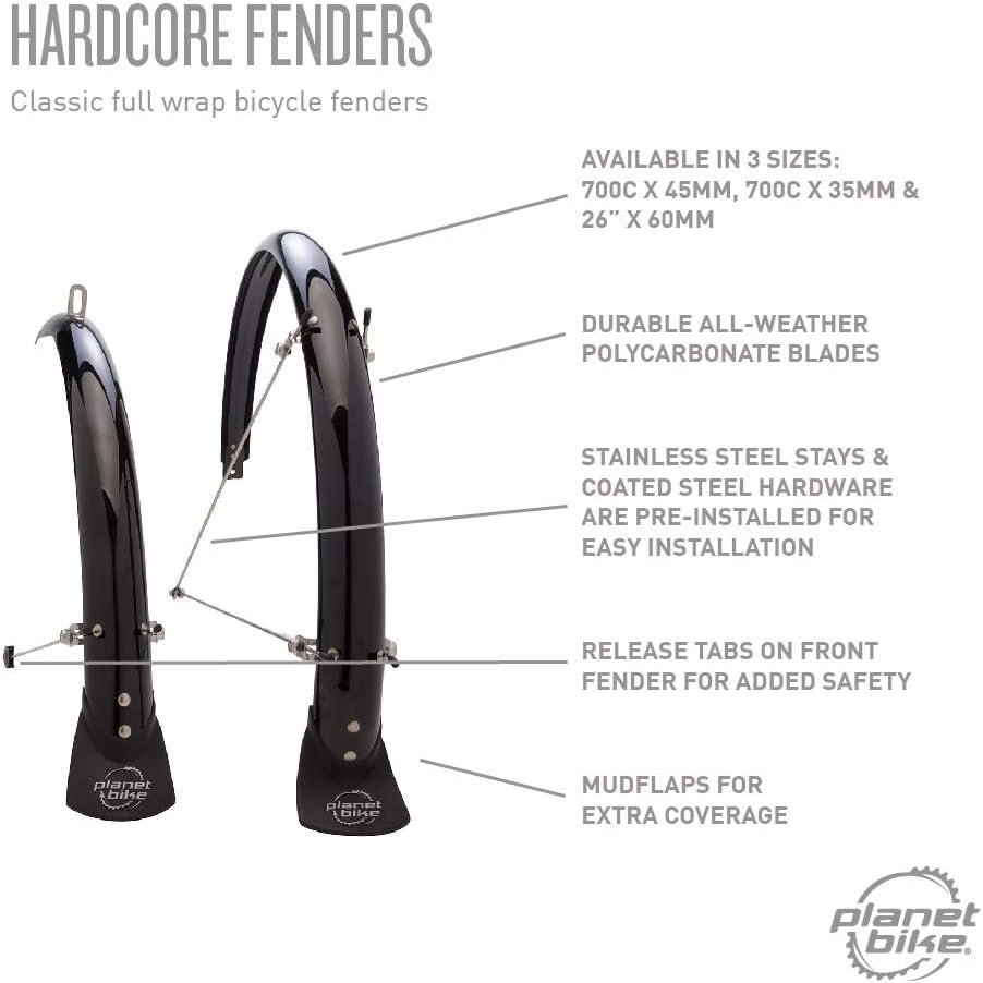 Planet Bike Hardcore bike fenders – 26″ x 60mm (black)