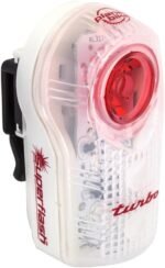 The Planet Bike Superflash Turbo rear tail light for bikes was built to keep you visible on the road, path, or sidewalk. With two simple modes to operate, flashing and steady, The extended run times on two AAA batteries can reach 100 hours. The brilliant output, attention-grabbing flash pattern and super long run times make sure you’re noticed day or night. The brightest replaceable battery tail light made by Planet Bike. Multiple mounting options come with packaging. Batteries included.