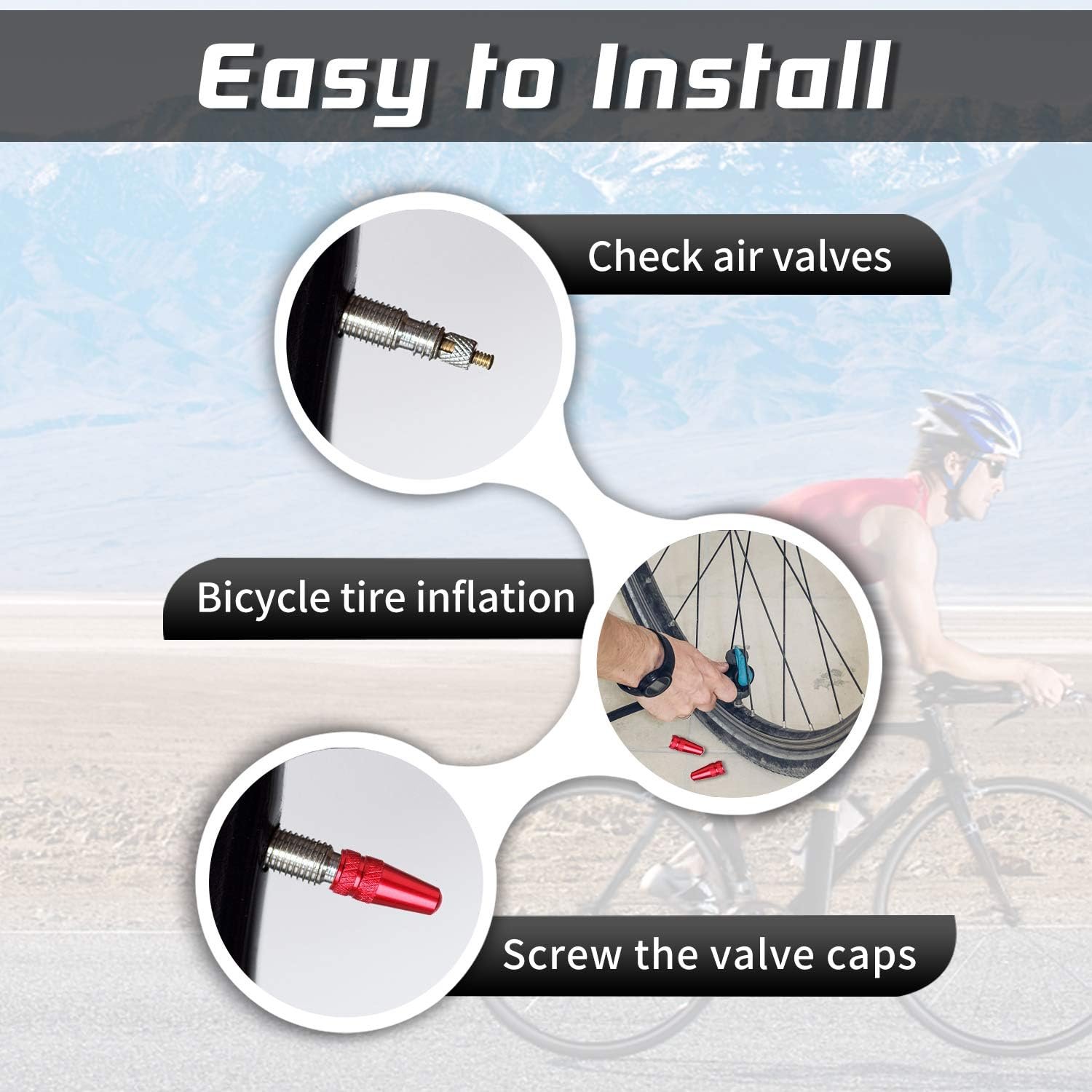 FEATURES—— Lightweight, portable, durable, easy to install and remove, cover your valves to prevent damage to the presta valve cores