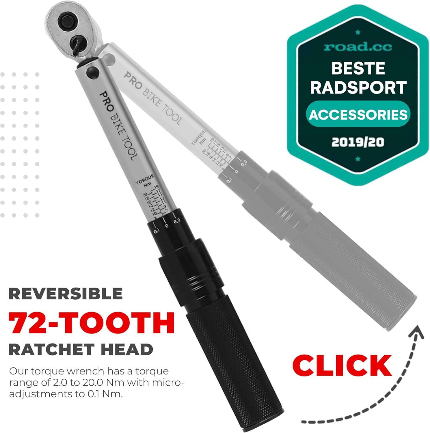 Manufactured and evaluated to meet the highest industry standards. The torque wrench has a 2.0 to 20.0 Nm torque range with micro adjustment to .01, ensuring the fittings on your bike are tightened to the correct torque