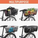 【Easy to Install】: The rear bike basket clamps to a standard rear rack, attaching and removing the cargo carrier from your bike is a breeze, allowing you to switch between carrying cargo and regular riding effortlessly. Our bike basket come with a waterproof cover, a cargo net, and ample installation accessories.