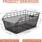 【Large capacity】:Essential for every bike or ebike enthusiast,this Bikes Cargo Basket is strong, durable, and provides a generous storage area that can accommodate groceries, backpacks, parcels, and more, making it an ideal companion for your daily activities.Its basic black steel frame is deep enough (12″D x 17.7″W x 8″H) that you don’t need a cargo net to keep everything from bouncing out–though you’re probably safer using one anyway.