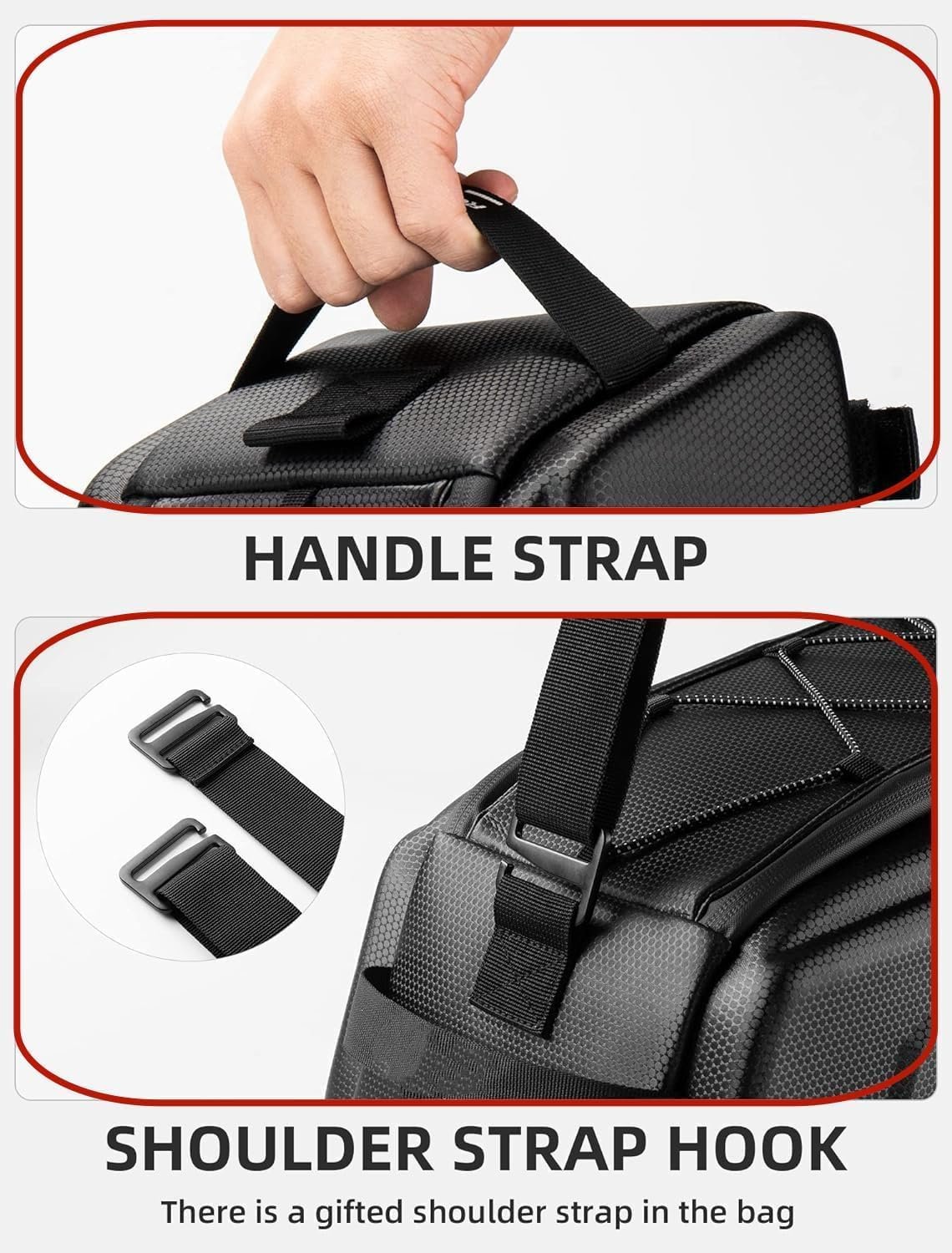 【Multifunctional Design】Versatility at its best! Use it as a shoulder bag with the included shoulder strap or convert it into a handbag using the hook on the bag. Off the road, this rack pannier bag transforms seamlessly into a handy companion for travel, camping, picnics, skiing, and more. It’s not just for cycling—it’s your go-to bag for any adventure.